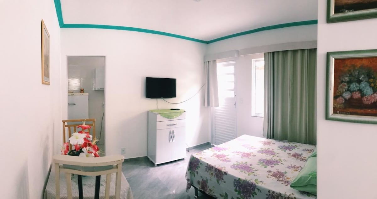Property with a bedroom, kitchen and bathroom near the beaches of Cabo Frio. The property has a double bed, a bunk bed, refrigerator, stove, microwave oven, sandwich maker, blender, kitchen utensils, fan, TV and Wi-Fi. It holds up to 4 people. Address: R. Frei Henrique Coimbra, 158 (Reference Point: in front of the Civil Police Station, corner with Avenida Teixeira e Souza). Central region with vast trade. There is no parking, stairs need to be climbed.