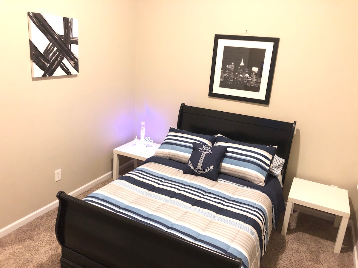 Enjoy easy access to everything from this perfectly located home base. Where in the middle of everything you need we have a LA fitness across the street a super Walmart Plaza Burlington coat factory Zaxby’s IHOP dollar tree Walgreen, the Marta bus stop and so much more and just minutes from the airport you can’t go wrong staying with us and our prices are budget friendly.