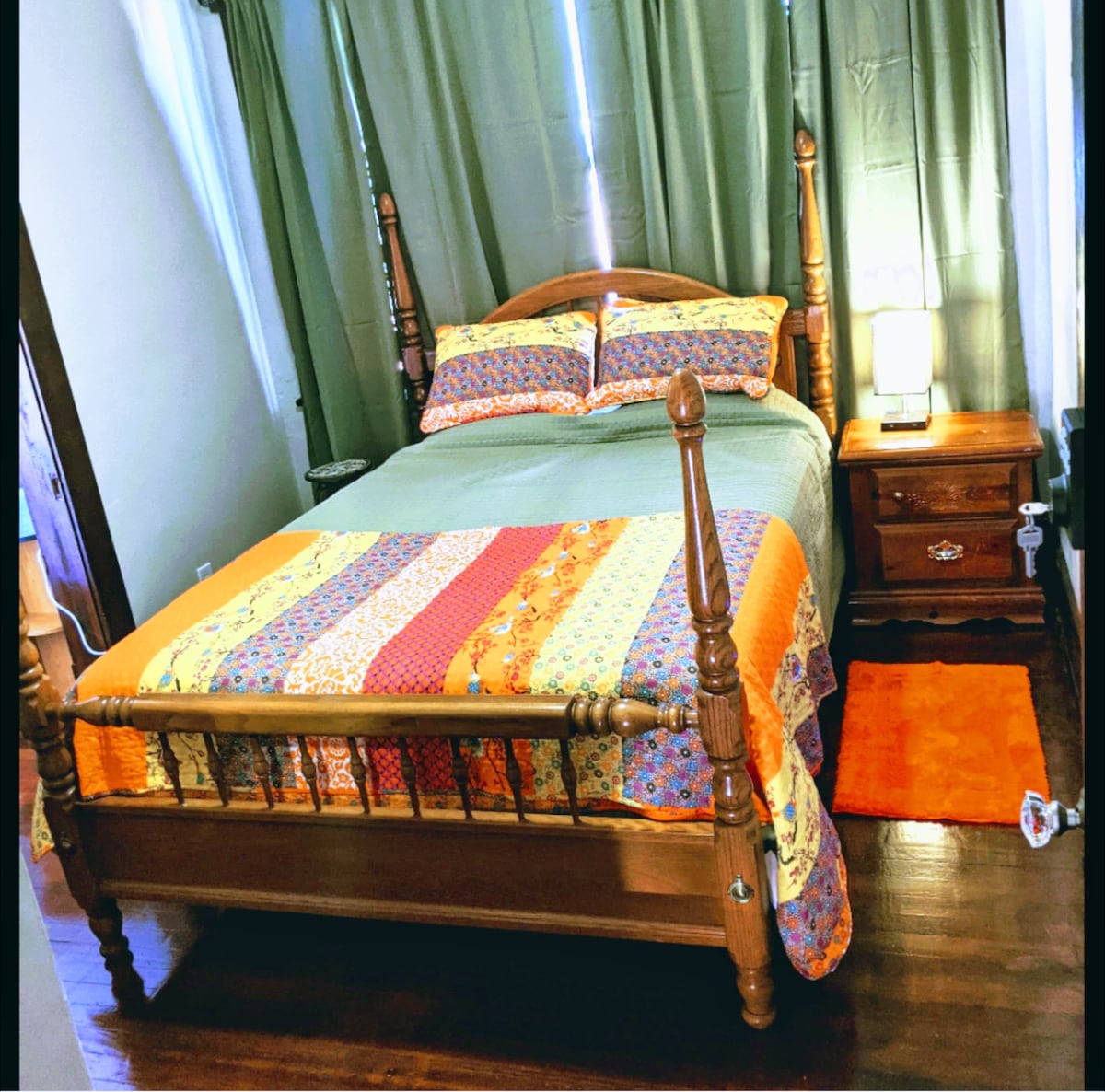Private room with full-size bed and small table. Ideal for single guests, but active couples may also find the space inviting. Easy access to the Roanoke River Greenway and Mill Mountain trails. Walk to downtown or stroll 1/4 mile to the trolley stop!