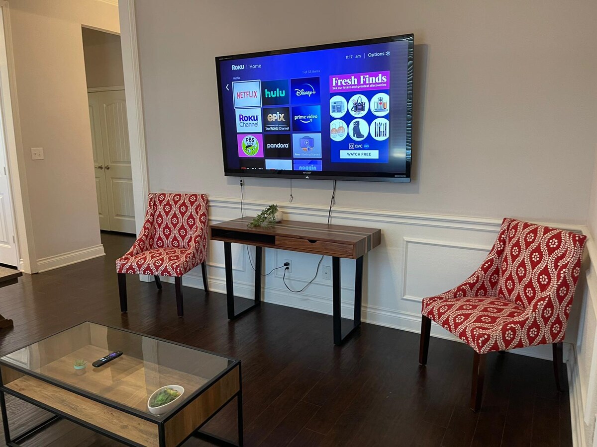 Smaller bedroom in a 5 bed 3.5 bath house. Bedroom includes a double bed, smart tv and a desk. Shared living room upstairs with a treadmill and 72’ tv. Bathroom is shared with one other person but sometimes is private. Laundry room upstairs.