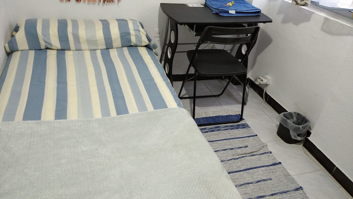 The room is small and very simple, no luxuries. It has a lot of light because the floor has windows to the outside including the bathroom. As I like to ventilate them I always have them open so it is possible that I find some dust. I clean the bathroom every morning but you may find hairs if you shower in the evening. Please note that there are 2 rooms that are rented and each person can shower at a different time. It's like a hostel where 3 bedrooms share bathroom. The kitchen is not available.