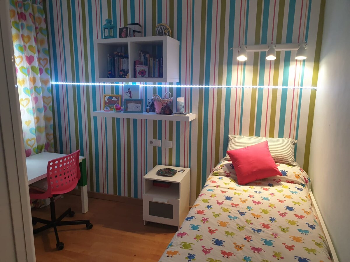Enjoy this comfortable room with a single bed and wardrobe, ideal for students, professionals or travelers. Its strategic location easily connects you to the center of Seville (nearby buses) and the airport (10 minutes by car). It shares common spaces such as the living room full of art, the bathroom and the terrace overlooking Seville from the heights. Fast WiFi, A/C, free parking and a quiet atmosphere guarantee you a perfect stay.