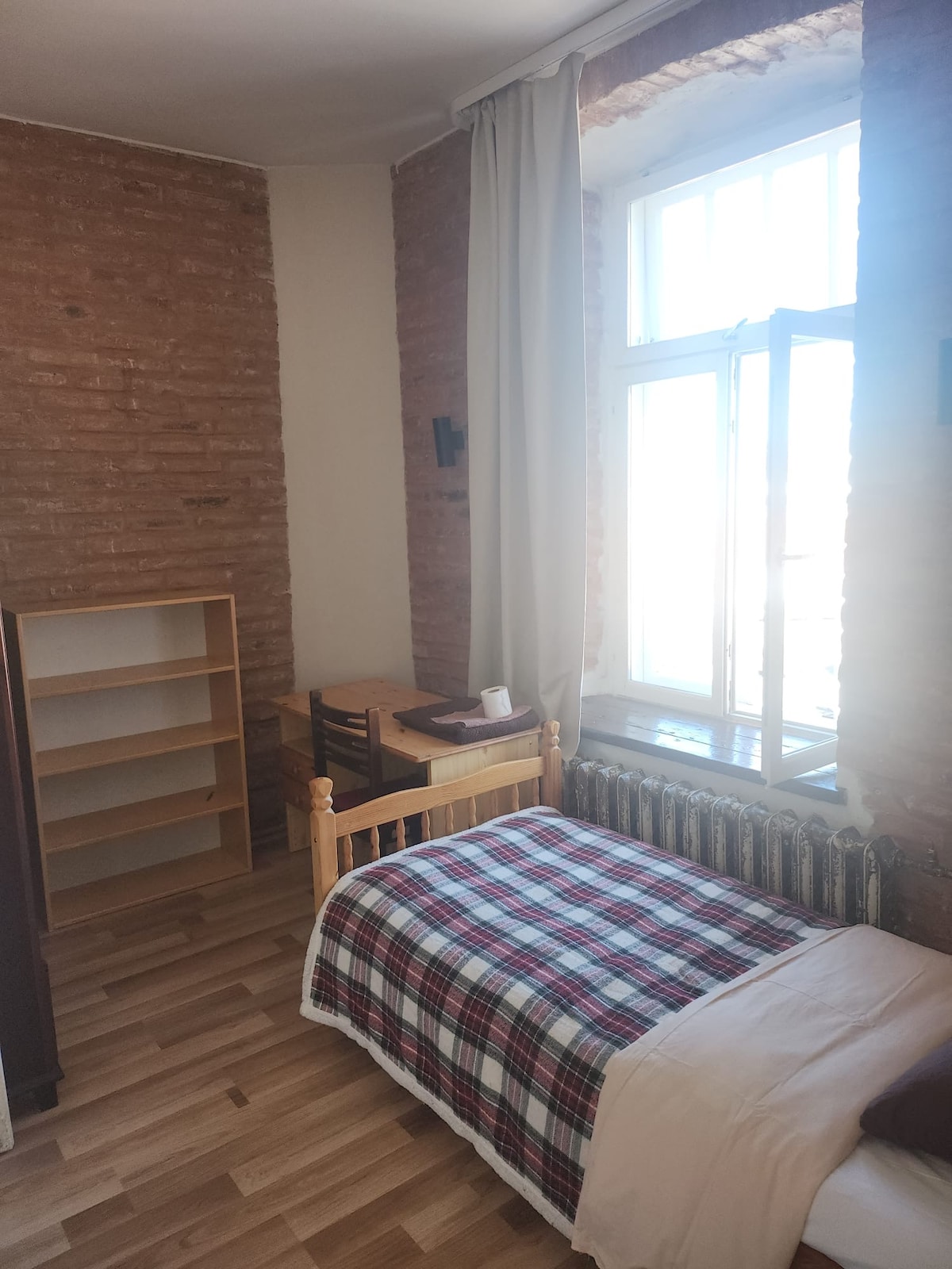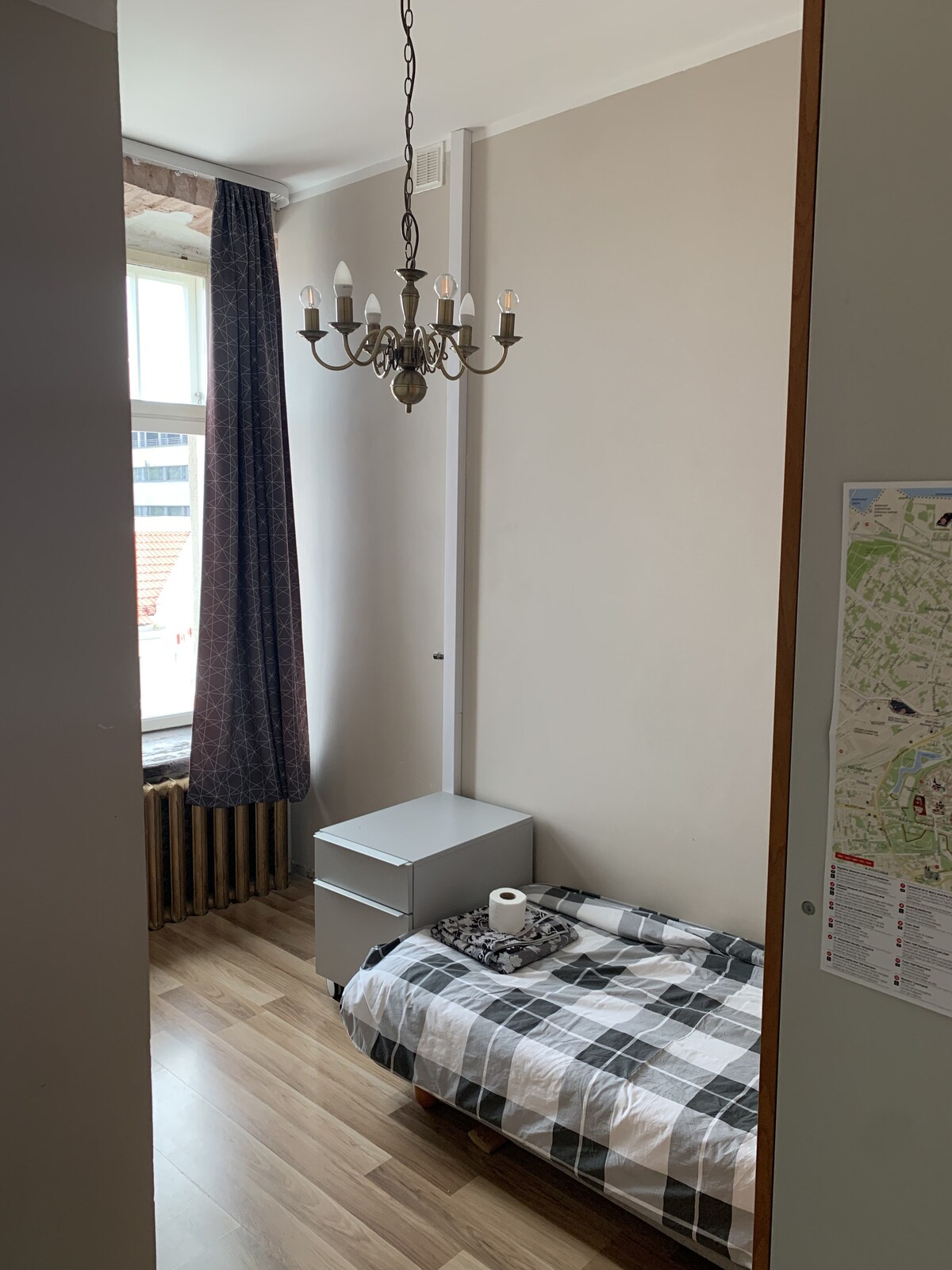 This cozy private room in a spacious apartment near the center is perfect for one traveler. The apartment is located on a quiet street in a beautiful wooden house area. Everything is near: the city center, old town, shopping, beach. Your room has one comfortable bed. There is a table, a chair, clothing rack and shelves for your things in your room. The kitchen is equipped with everything you need for cooking or storing your food. We will share the kitchen, bathroom and toilet.