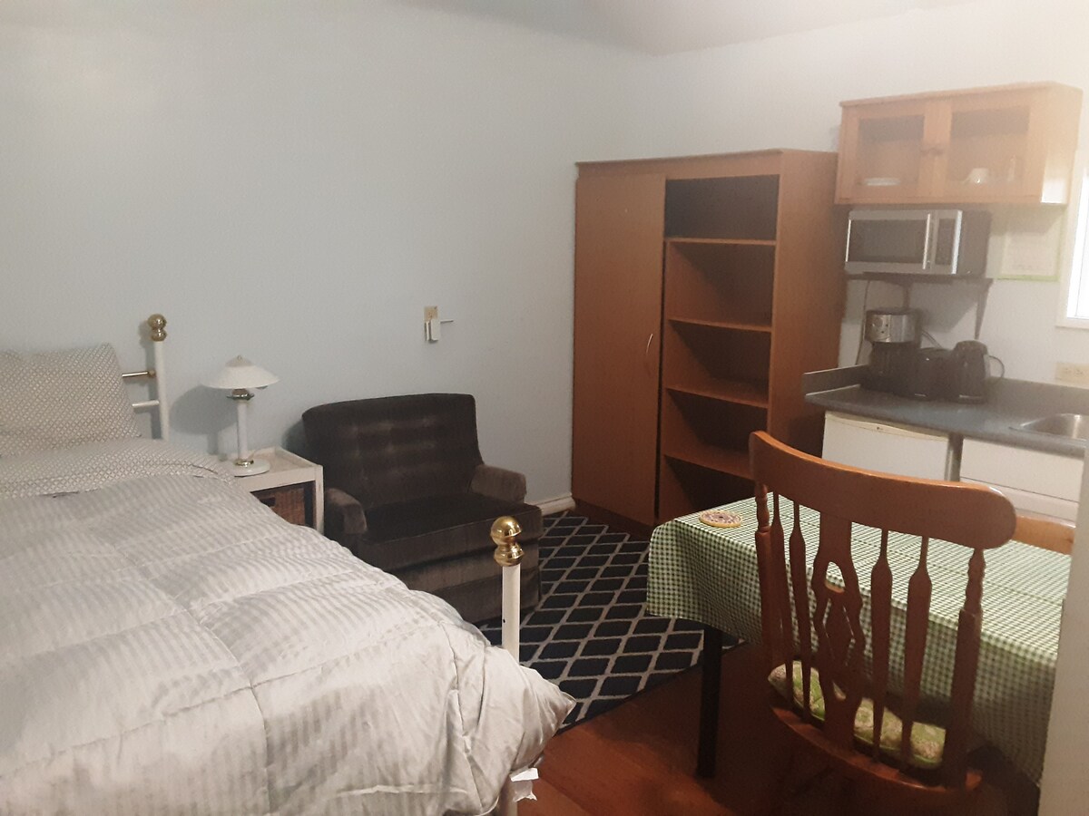 Located on a quiet residential street across UVic, this cozy studio with a comfort queen bed, ensuite washroom and small kitchenette is the perfect place to students or solo traveler. It has independent entrance and offers easy free parking for guests. 12 min drive to downtown attractions including inner harbor and parliament buildings. 14 min walk to grocery stores, restaurants, gardens, and Mt Tolmie. 5 min walk to bus terminus at UVic for many key routes in town.