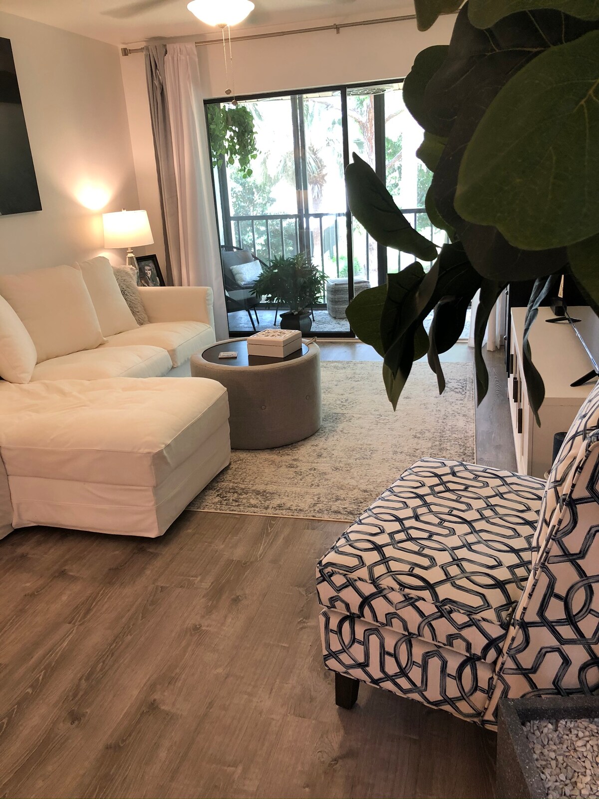 Glass door lanai with beautiful trees and pond views. Full laundry facilities in unit. Lots of closet/storage room for guest belongings. 2 smart TVs, Desk, printer, WiFi.