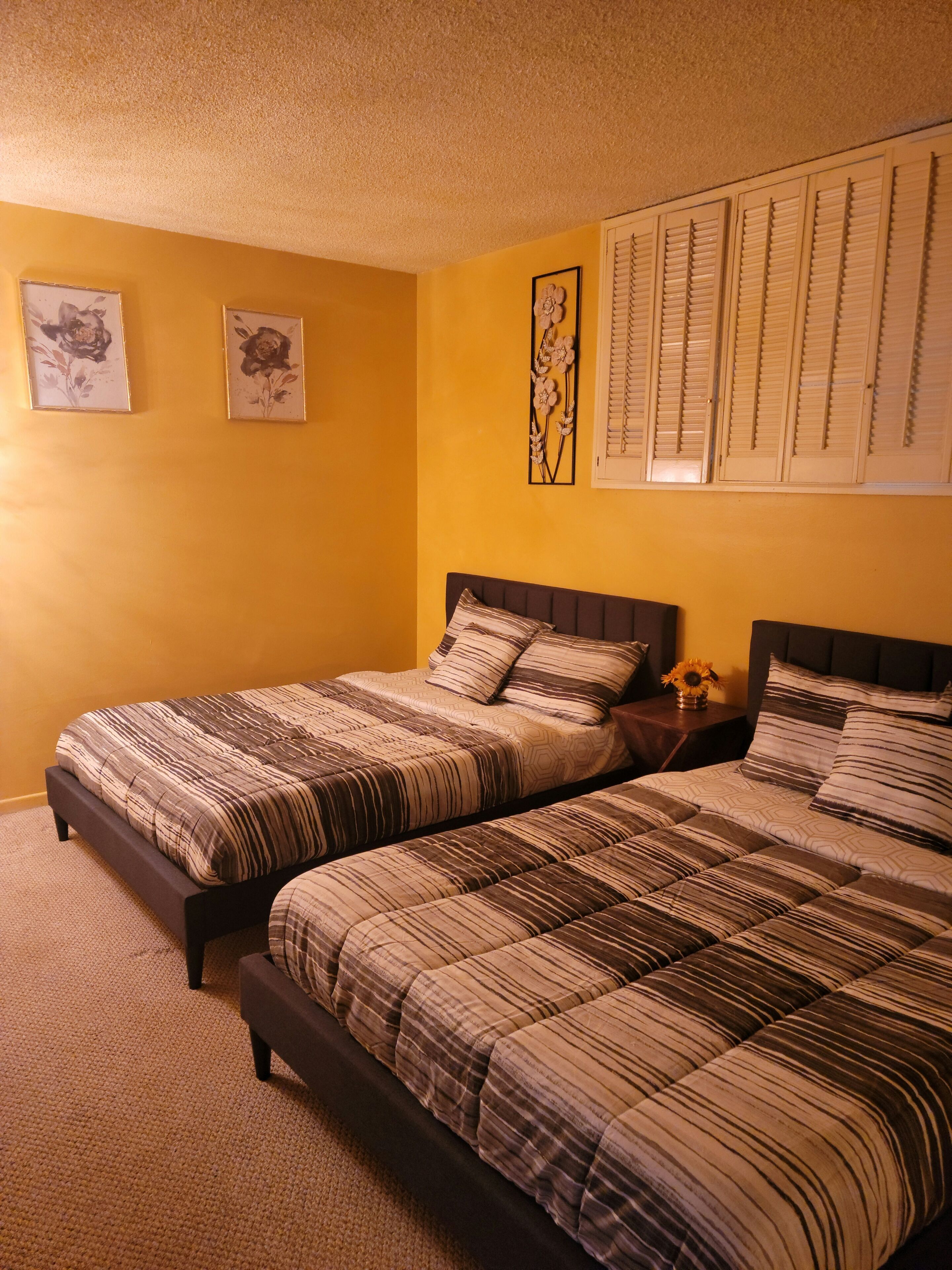 This Private Bedroom has lock and key for your convenience. It’s furnished with a QUEEN size bed, fresh linens, towels, nightstand, desk, chair, hangers and more to ensure a comfortable stay.