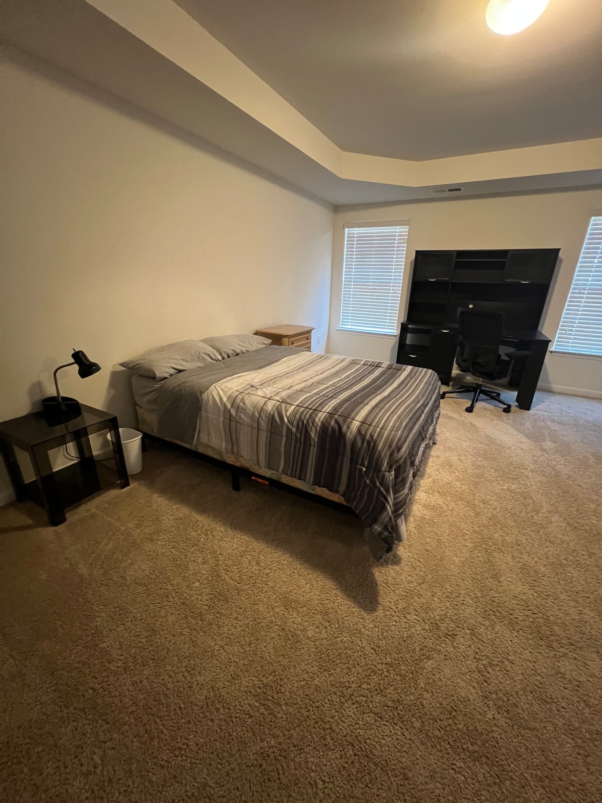 Private bedroom w/ parking spot in 3 bed 2.5 bath home! Bedroom has a comfy queen bed, brand new Sealy pillows, large closet, desk with monitor for work/studying and cube style storage. Bathroom with new flooring, two sinks, and lots of space. Large living room, brand new washer/dryer and spacious kitchen. Would be rooming with current surgical resident at Wake Forest hospital and small, well-behaved dog. Ideal for students, nurses and young professionals. <10 min to both hospitals!