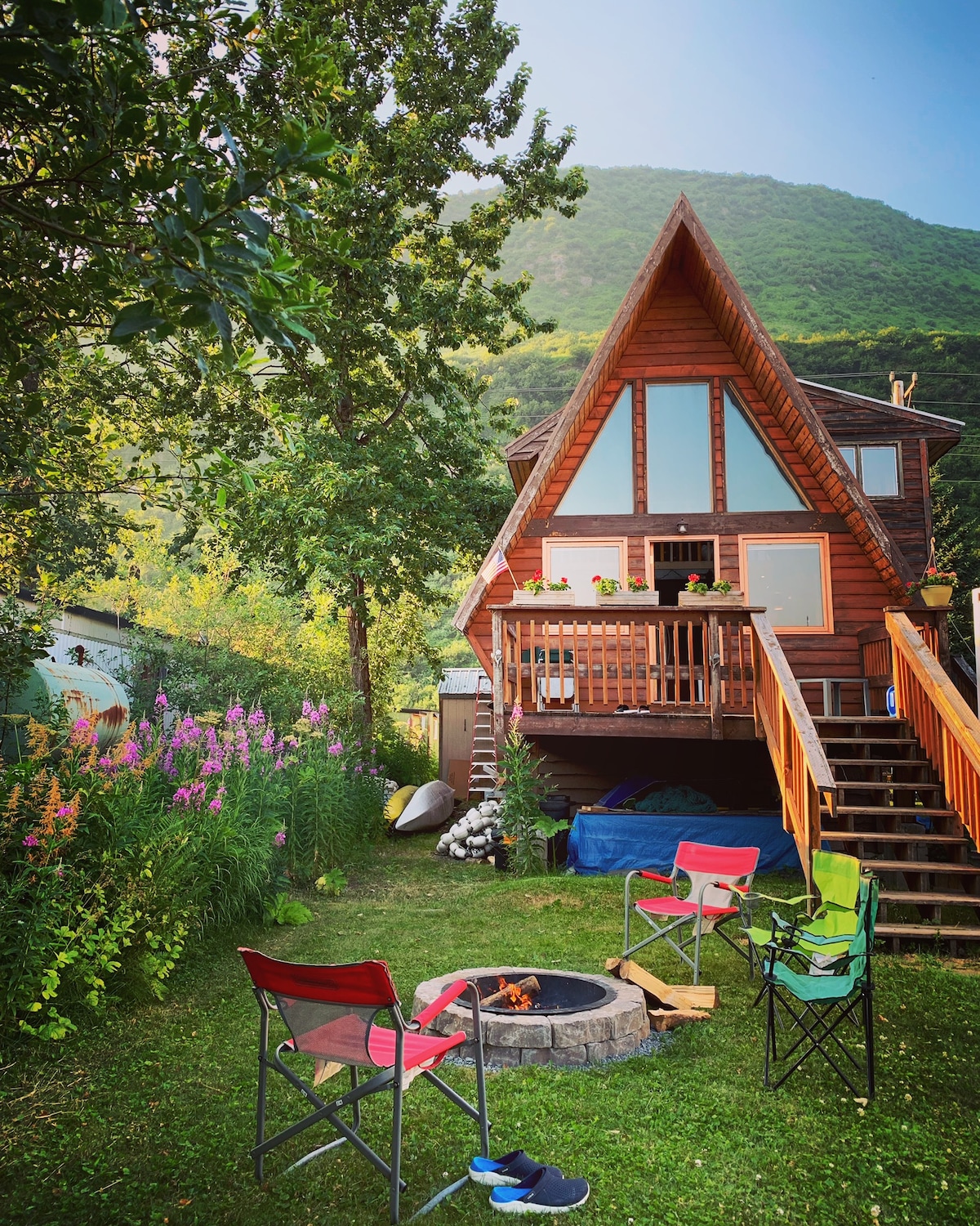 In this peaceful neighborhood, you will find the perfect base camp for your Alaskan adventure. The Hinterland Chalet is designed to provide you with a cozy stay in Girdwood with full kitchen and sleeping amenities. This timber frame chalet boasts beautiful redwood siding. Built by climbers in 1983, the recycled redwood came from Anchorage's original REI store.