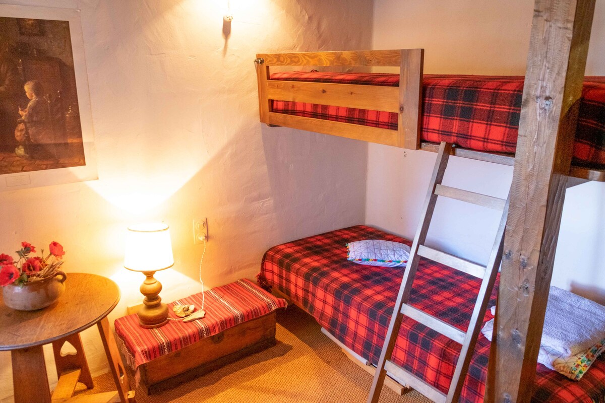 Aside from this first room is Bedroom 2, a perfect setup for a group of three, you'll find a bunk bed and an additional single bed. The room also offers stunning mountain views through its large window. An adjacent full shower bathroom serves these first two bedrooms.