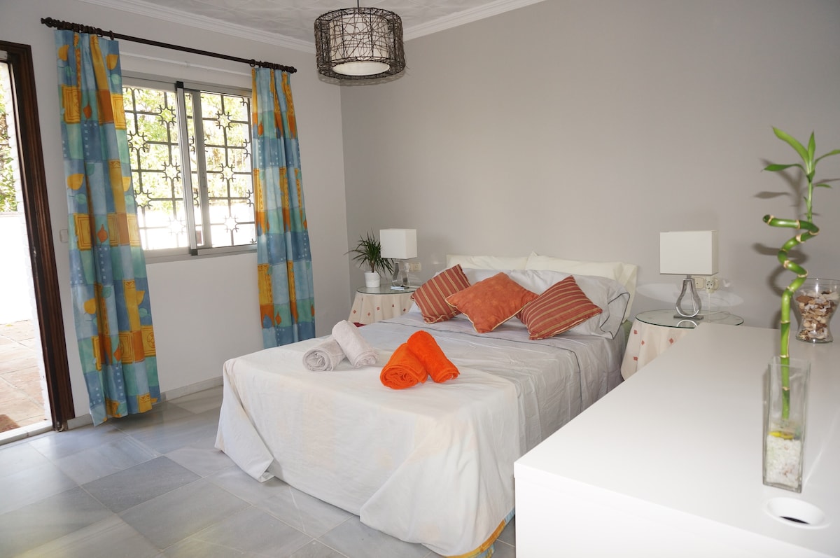 Room and private bathroom completely renovated, with independent entrance, 7 minutes walk to the beach in a very quiet urbanization, with access to the garden and pool of the villa. From the garden there is a breathtaking view of the ocean and mountain.