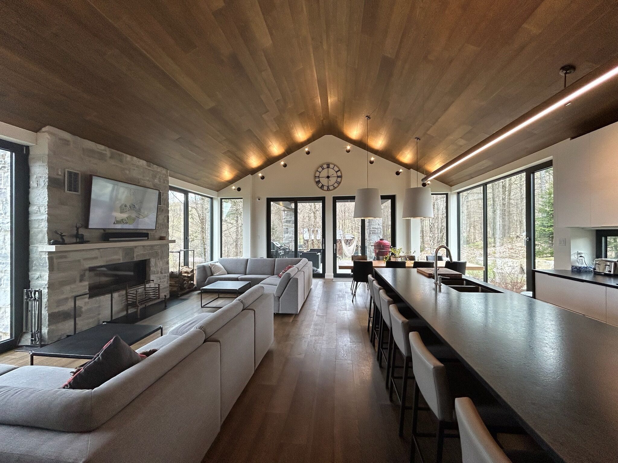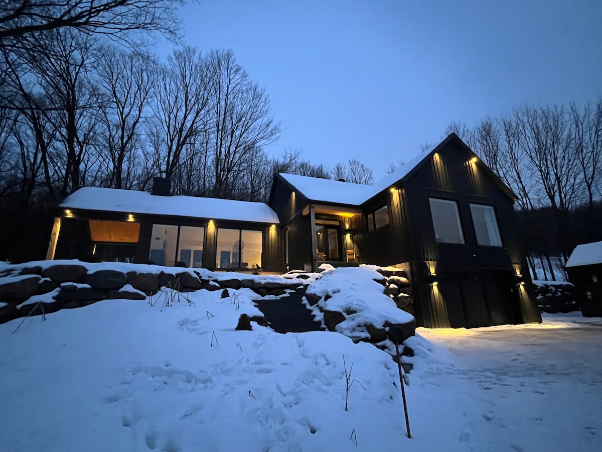 Perched on a hill, the Iron Hill chalet offers you a MAGNIFICENT view of nature as it rises and transforms, just 3 minutes from the Bromont ski mountain, who would have said! This very intimate and fully equipped high-end chalet offers a large common area with cathedral ceilings which is inspiring and unifying. Large, bright spaces and two well-established offices that allow teleworking. Many 4-season activities nearby. Located 50 minutes from Montreal.