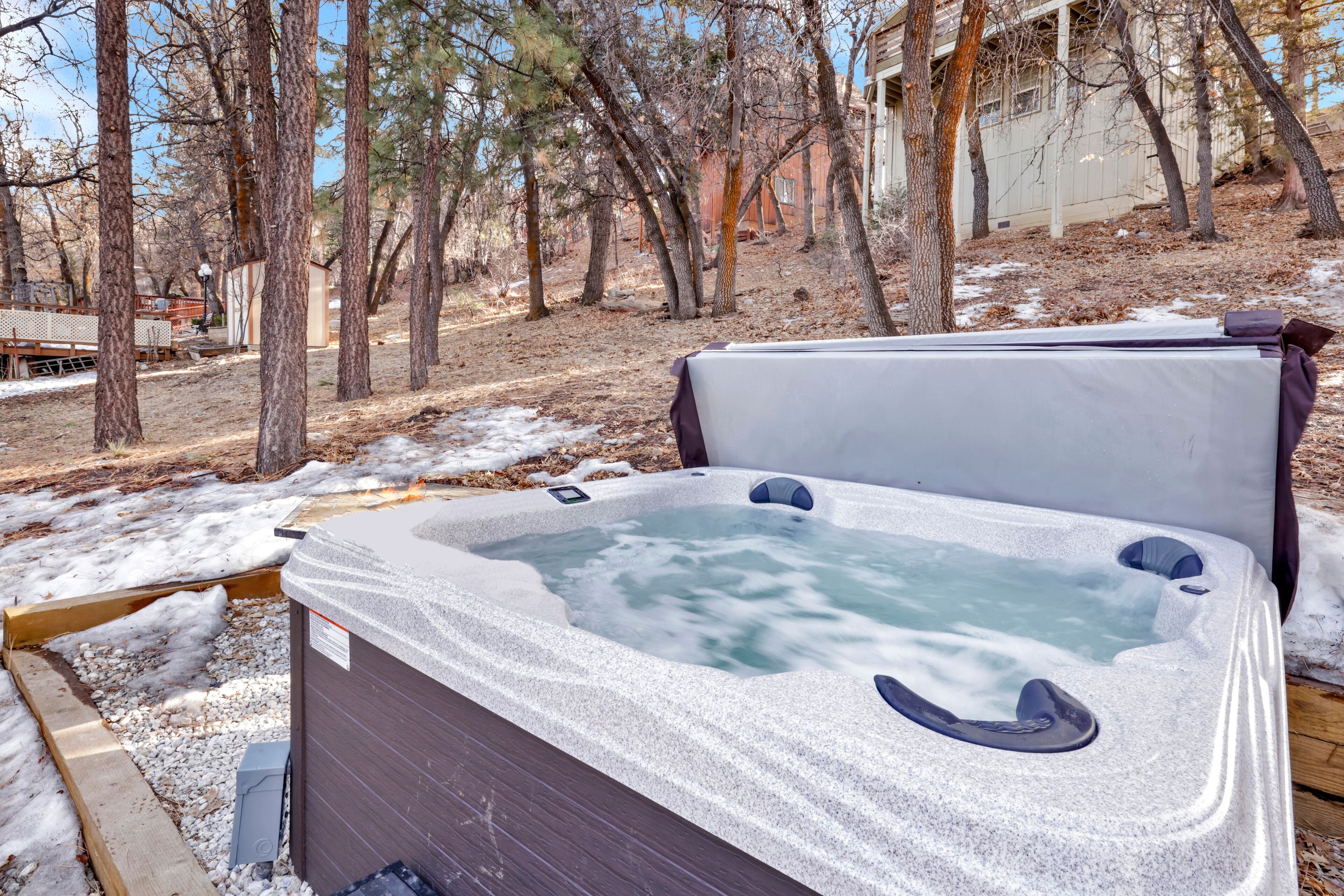 A short distance from snowboarding, cross-country skiing, and more, this smoke-free cabin lets you experience it all. Jump into your car and make short work of the 5-minute drive to Bear Mountain or the 5-minute drive to Bear Mountain Golf Course (and enjoy the property's convenient covered onsite parking in the meantime).