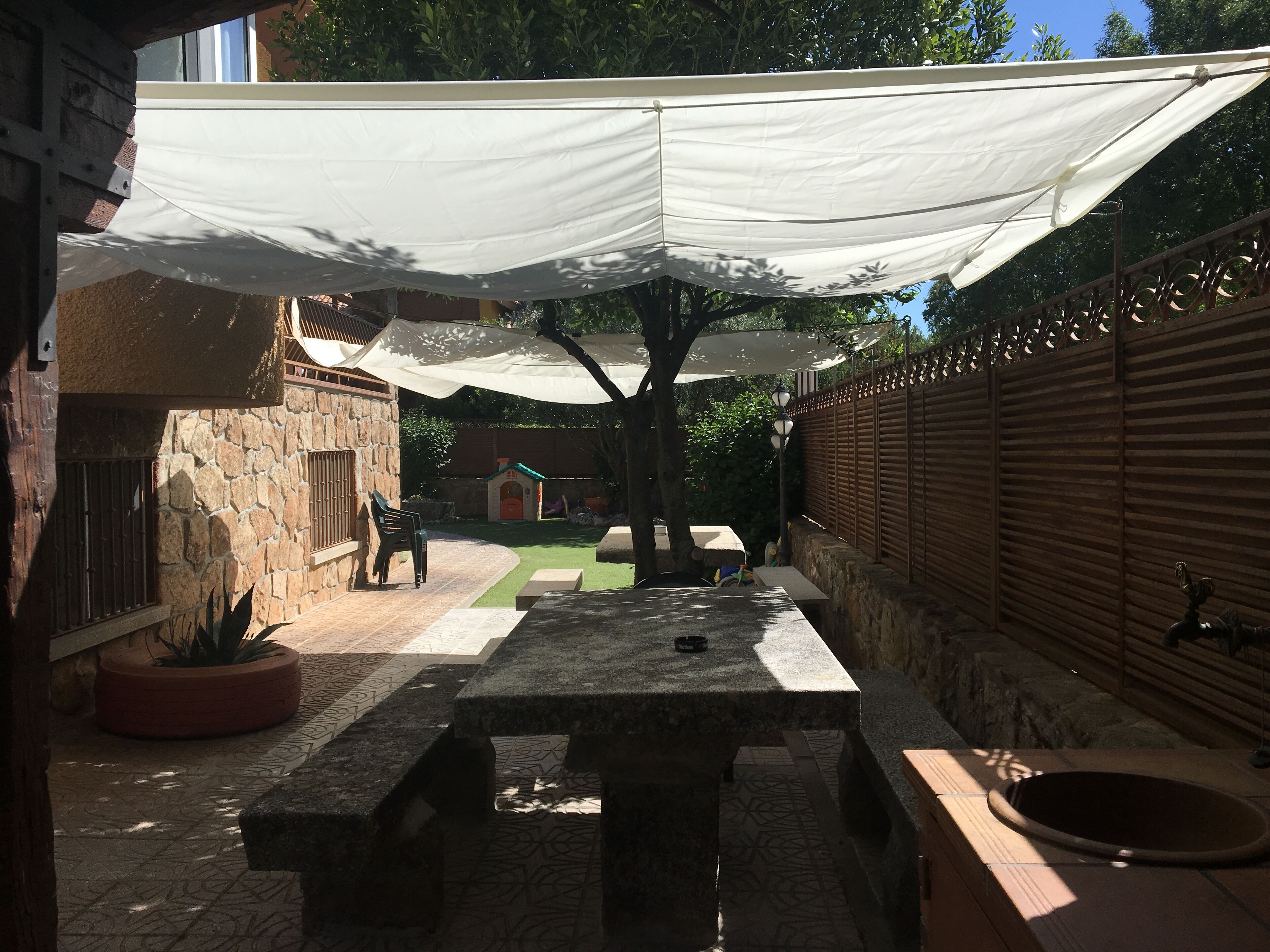 Detached villa of 350m2 divided into 2 floors, on the entrance floor to the house there is a suite room with interior living room and own bathroom, two other double rooms with bathroom, very spacious living room with two rooms, fully equipped kitchen , and three terraces, one with a table and umbrella to enjoy eating and viewing the wonderful views of the Sierra de Guadarrama and surroundings, there is also a gas barbecue for quick and easy use. On the lower floor there is another double room with its own bathroom and a games room-cellar that has billiards, table football, electronic darts target, stereo, etc. where to enjoy in the company of friends and / or family, the winery has 1000m2 direct exit to the garden. Two Community Pools, one of them very large and deep surrounded by landscaped lawn with umbrellas and another smaller and shallow pool for the enjoyment of children, also the facilities have a tennis court, football and basketball in the urbanization a few 100m from the house, there is also a children's area with swings for the little ones. The house has an indoor and outdoor garage. The garden and the house has a door at the bottom through which you can directly access the forest road area where you can enjoy a pleasant walk even more if you go with a pet.