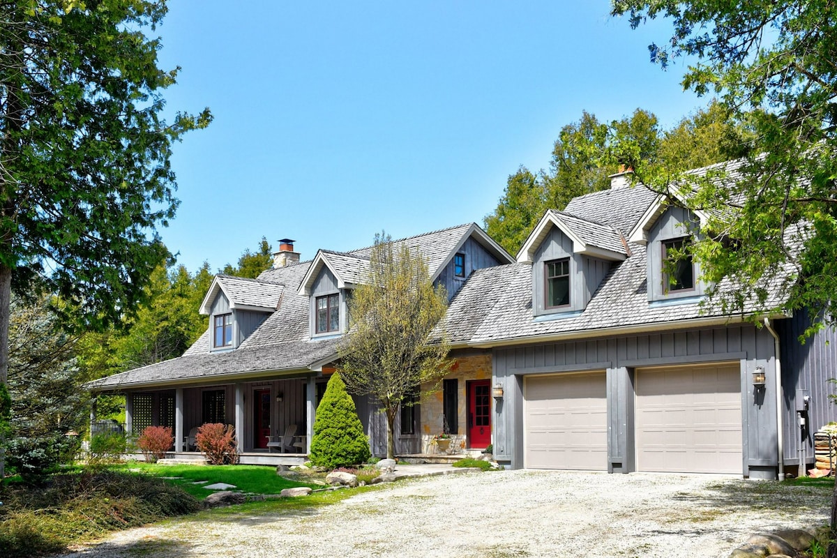Gorgeous, private, and immaculately maintained 4 season chalet, nestled in the trees, located minutes from the private ski hills and Blue Mountain and 10 minutes to downtown Collingwood. Has everything your family desires from summer to winter.