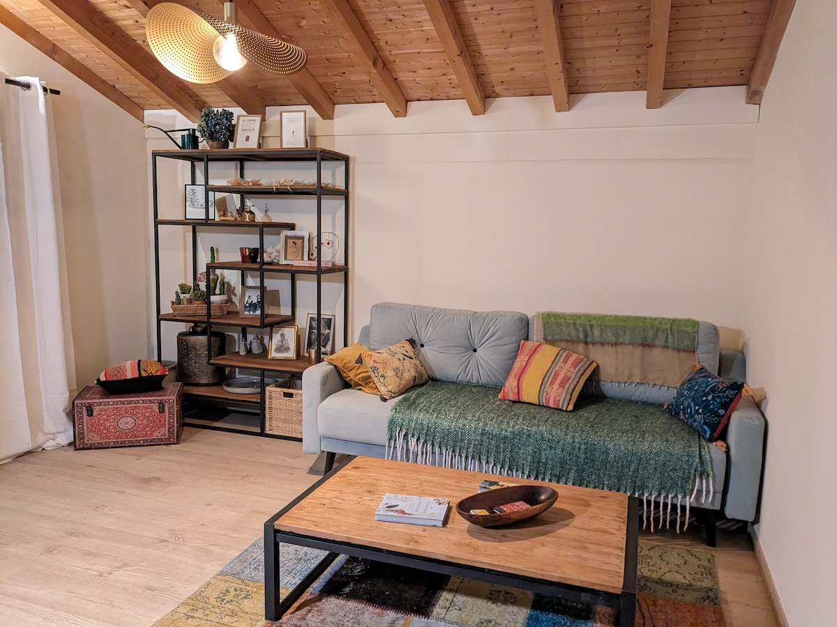 The chalet has a beautiful living room with a wood burning stove to enjoy the beautiful mountain evenings in a cocooning spirit after a beautiful day of skiing.