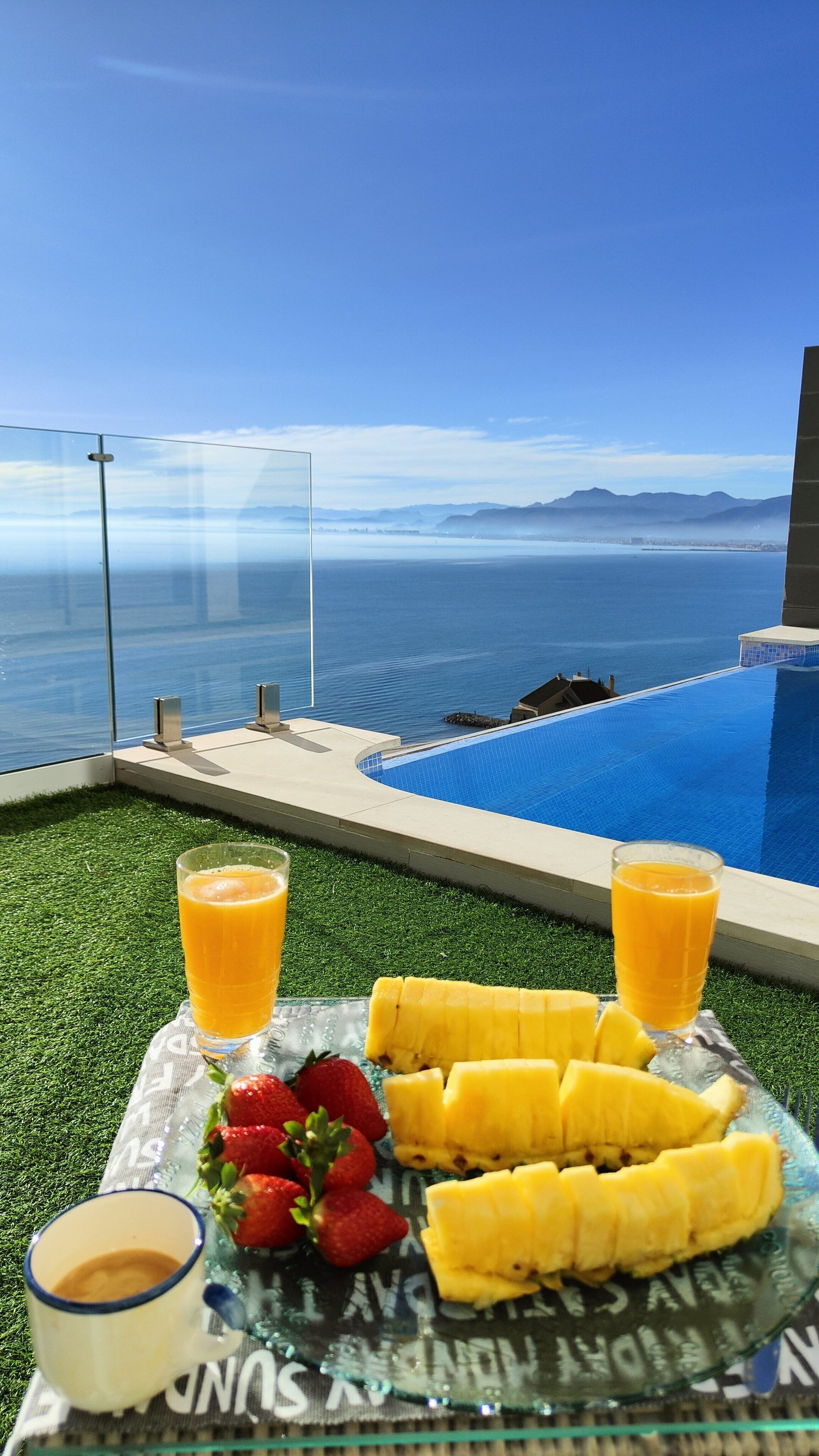 Capacity for 8 people, 3 double bedrooms, extra-large 3x2 sofa bed, 4 full bathrooms, 3 terraces, a 40m2 upper terrace with grass, sun loungers with incredible views of the sea, a large living room with access to a 55m2 terrace with an infinity pool! equipped kitchen, barbecue, air conditioning, optional elevator, activated if necessary, private garage for 2 vehicles.