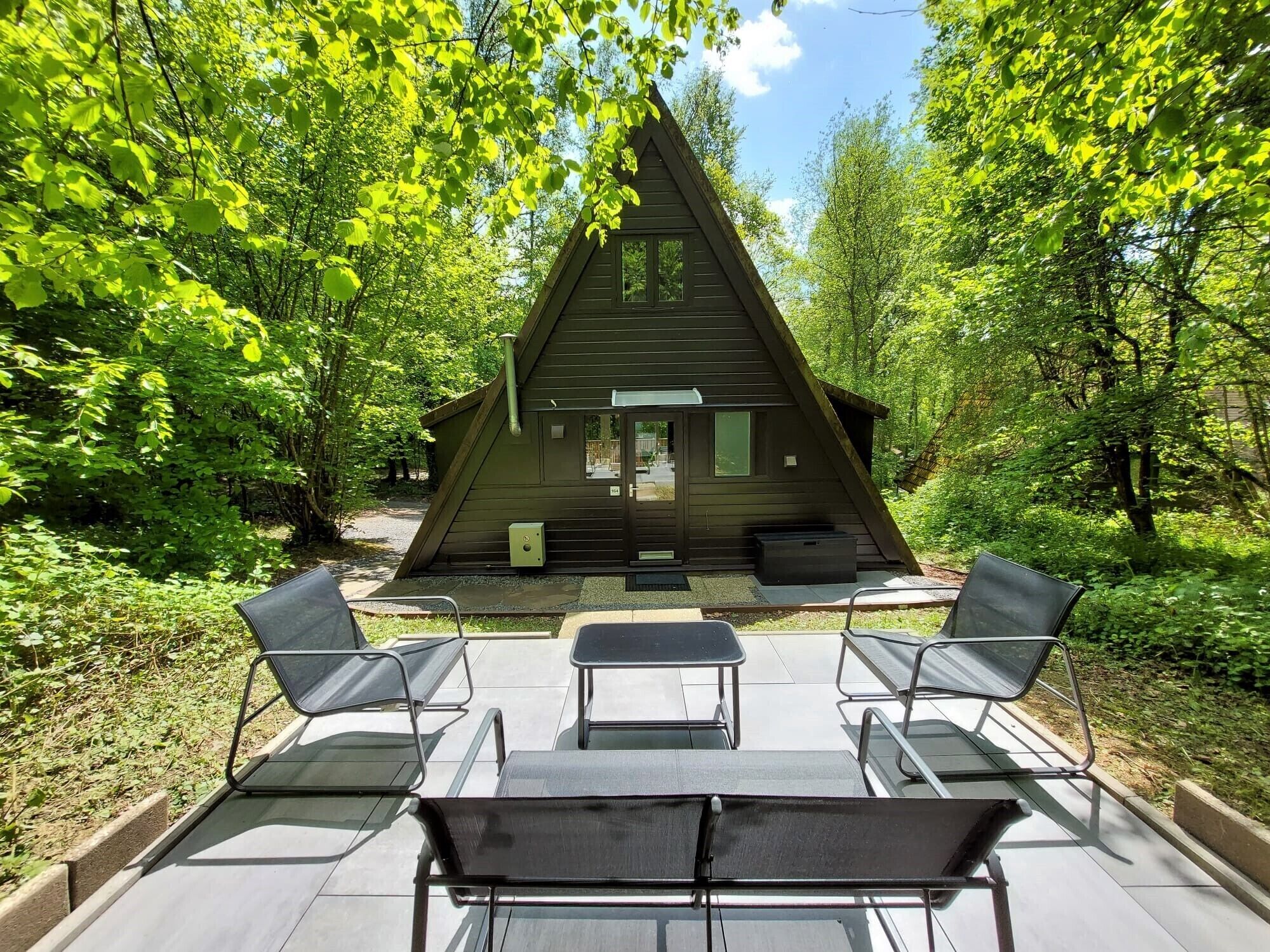 A cosy furnished A-frame chalet.