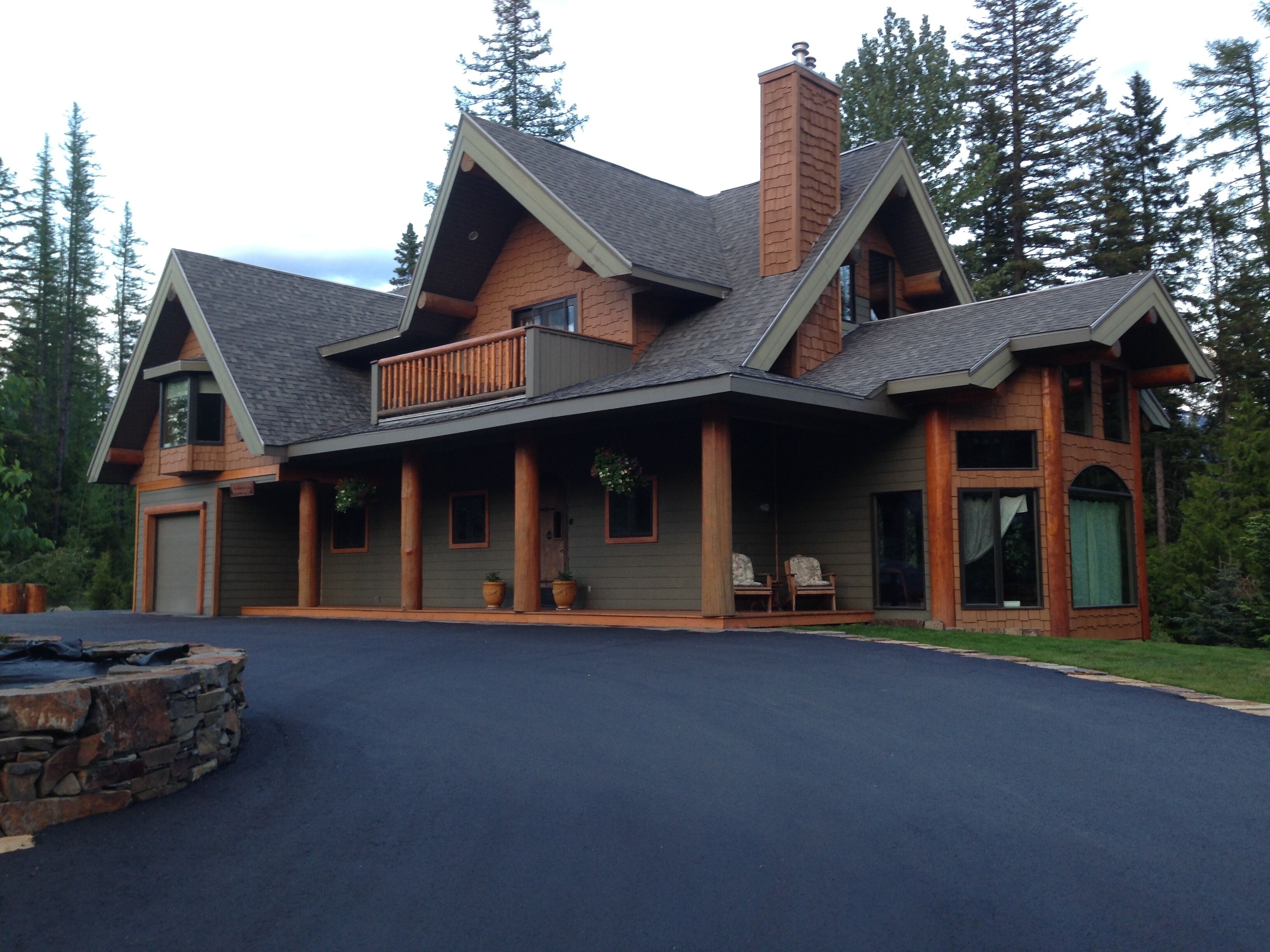 The Fernie House living room and loft windows look at the amazing Lizard Range mountains. The kitchen, living room, laundry and one bathroom are on the main level. Upstairs are three bedrooms, a large loft and 42' flat screen TV with Apple TV, cable, and Netflix. The master bedroom has a large closet with views to the rear of the house looking to the hot tub and forest. The second bedroom has a queen sized bed and and two twin beds. The third bedroom has a queen sized bed with a balcony looking up to the Lizard Range. Late afternoon sun makes it a perfect balcony to enjoy a glass of wine at the end of the day. There is a u-shaped driveway for easy access and lots of parking.