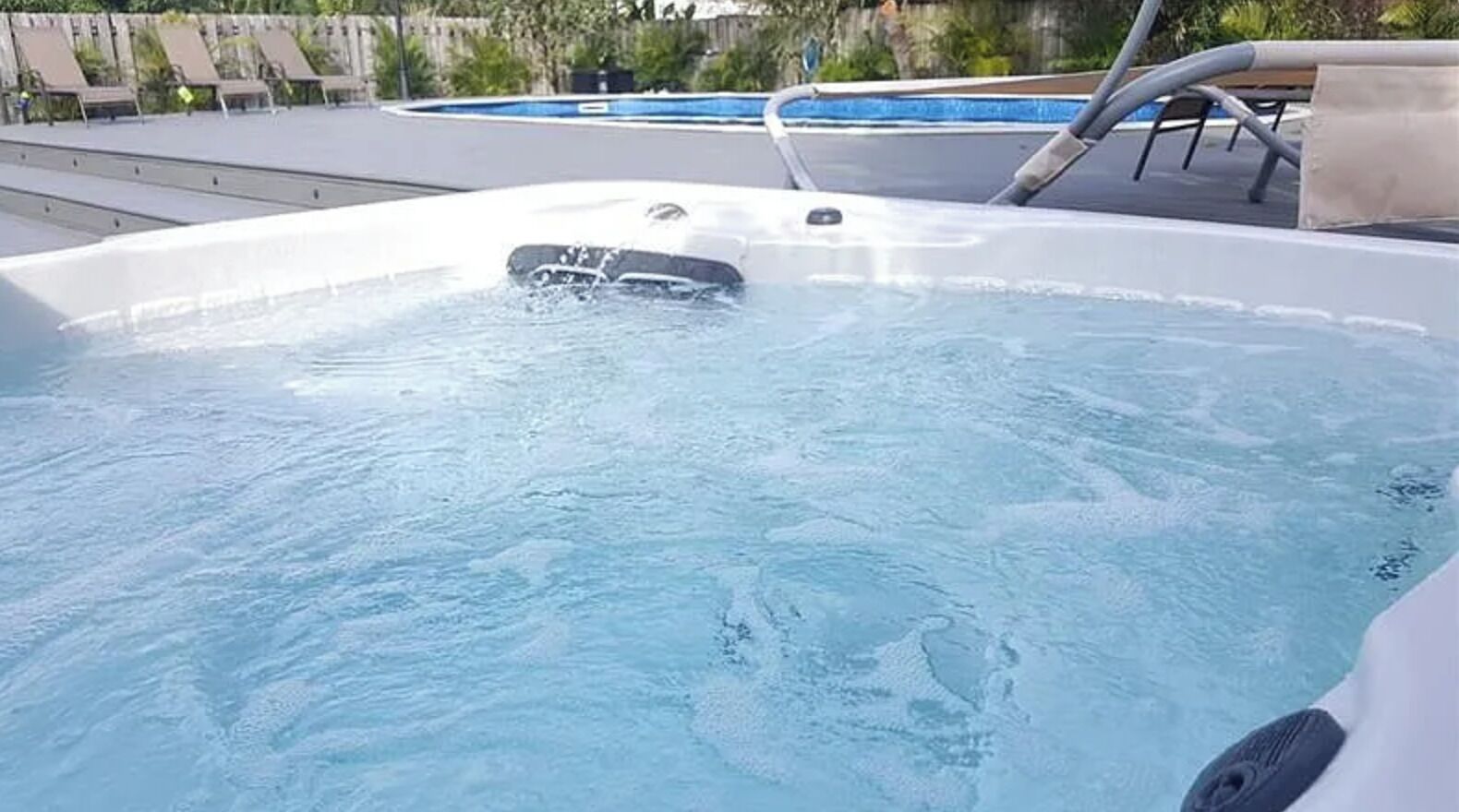 Enjoy the calm and relaxing atmosphere with a heated pool, jacuzzi, and fully fenced backyard, creating a private retreat for your stay.