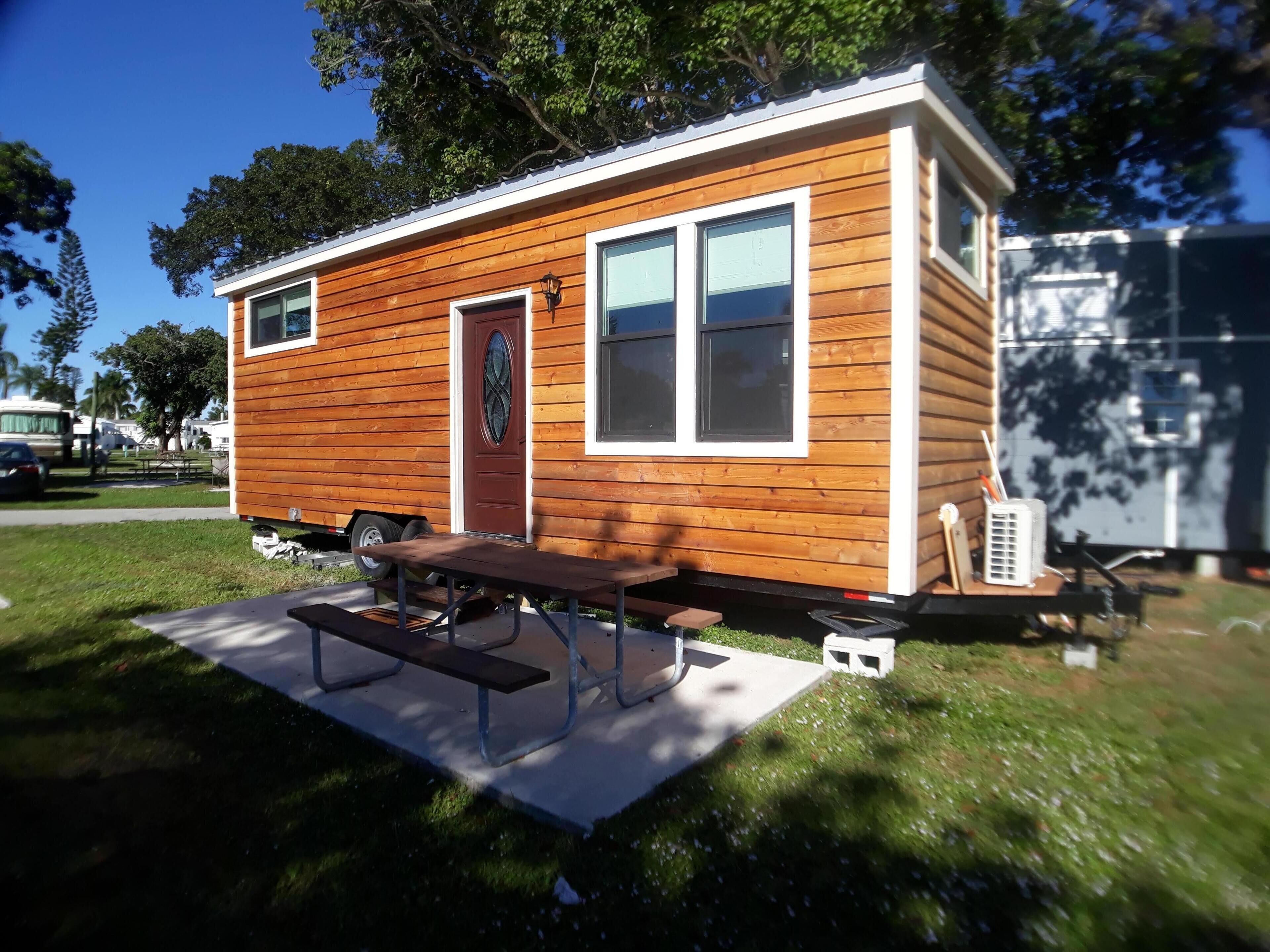 This is a custom, hand-built tiny home from the frame to stairways. Have fun shelling / snorkeling / sun tanning at the beach, and enjoy your quiet getaway in our time home--at night put together something to eat in our kitchenette, and binge your favorite show on Netflix over some ice cream. While layout and space are challenges for designing tiny homes, our tiny home provides a warm, comfortable layout which will comfortably house and sleep 1-5 people.
