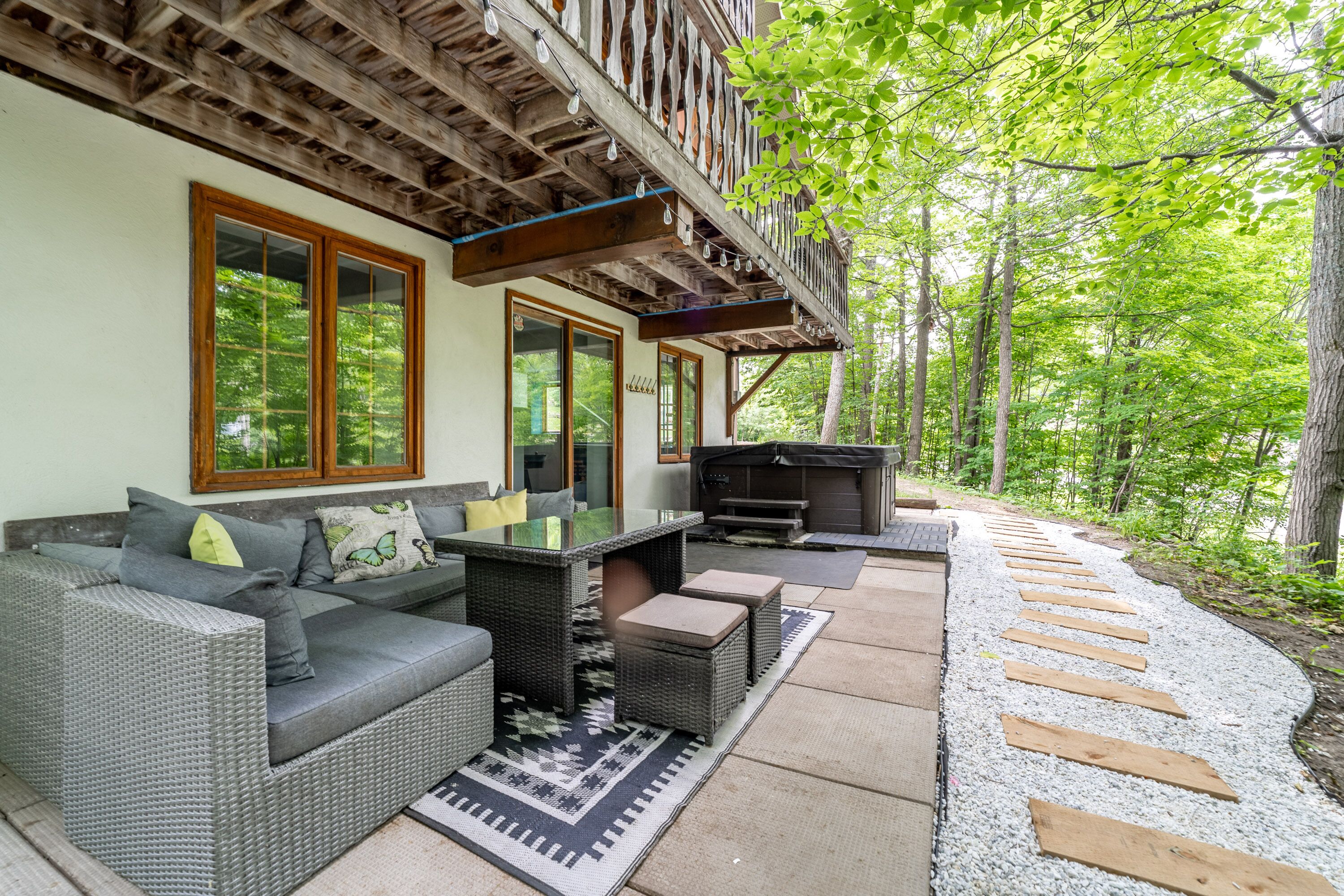 We have 6-7 person hot-tub overlooking Mont-Cascades (water park in the summer/ski hill in the winter)