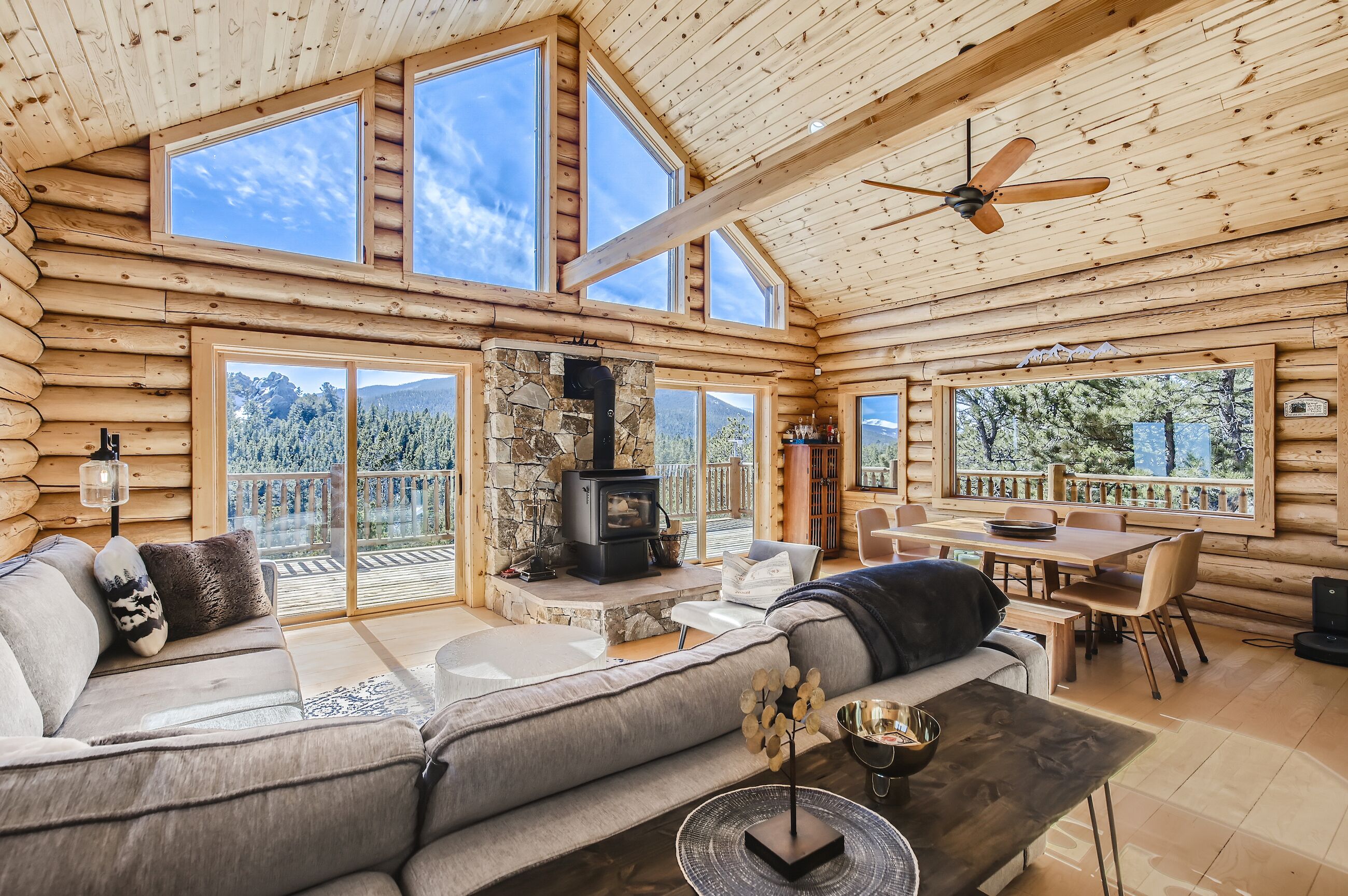 Perched at nearly 9,000' atop a quiet neighborhood, this secluded 1+ acre, 3500 square foot property boasts a beautiful log home with heavenly views spanning from Denver all the way through the Continental Divide. With 3 bedrooms that can sleep up to 6 people, Cabana Cielo is an adult version of your childhood treehouse!