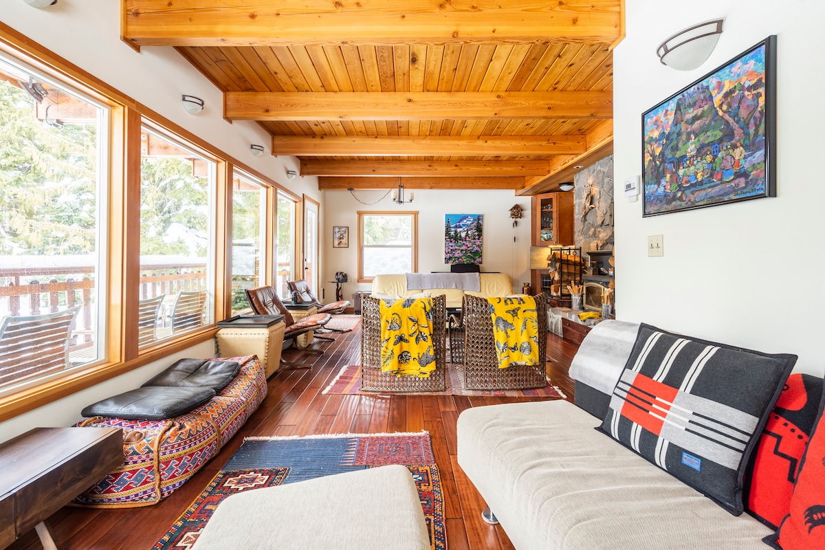 This chalet has French doors leading out to an outside deck to enjoy the sunshine on sunny days.