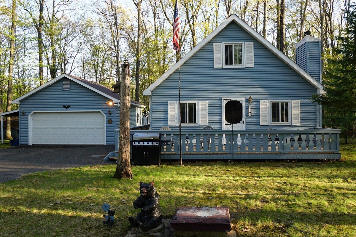 The Cozy Chalet boasts a large wrap around deck and beautiful landscaping easily accessed by 2 large sliding doors off the open floor plan. The wooded lot creates privacy to enjoy time with friends and family.