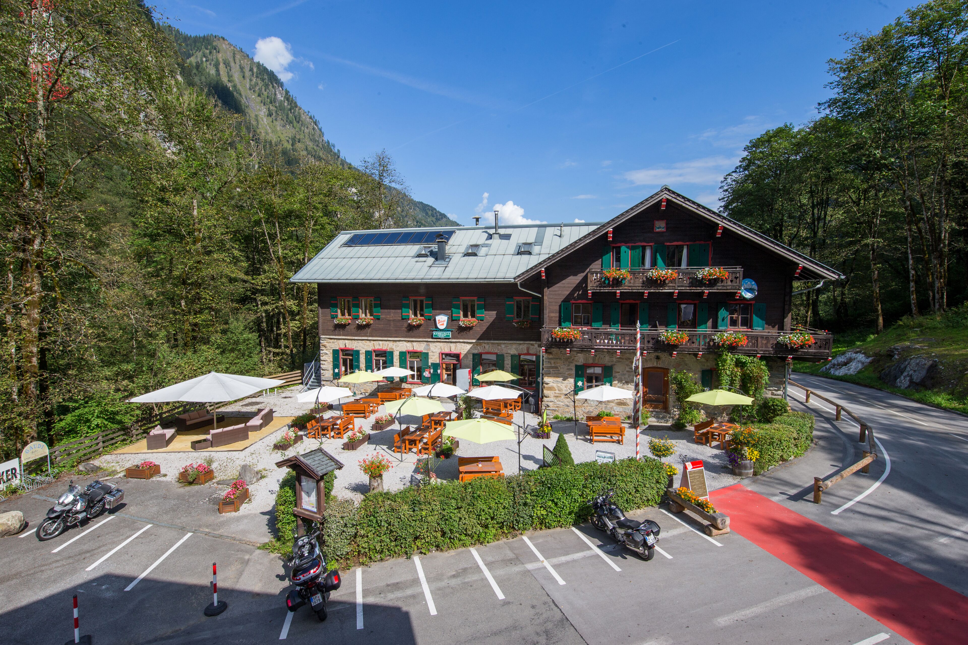 Alpenhaus Kesselfall consists of a large dining room, lounge and large industrial kitchen with the possibility of staff on request. The rooms are spread over 3 single rooms, 8 double and 5 family rooms. Half of the rooms have private bath and toilet, where the other half have a shared shower and toilet in the hallway.