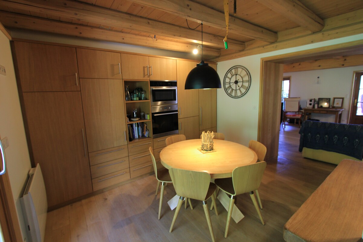 The main living floor is at the top of the chalet and is truly spectacular views with large windows bathing the living space in the afternoon sun and spilling out to a large balcony which offers stunning views of the Valleé Blanche ski area.