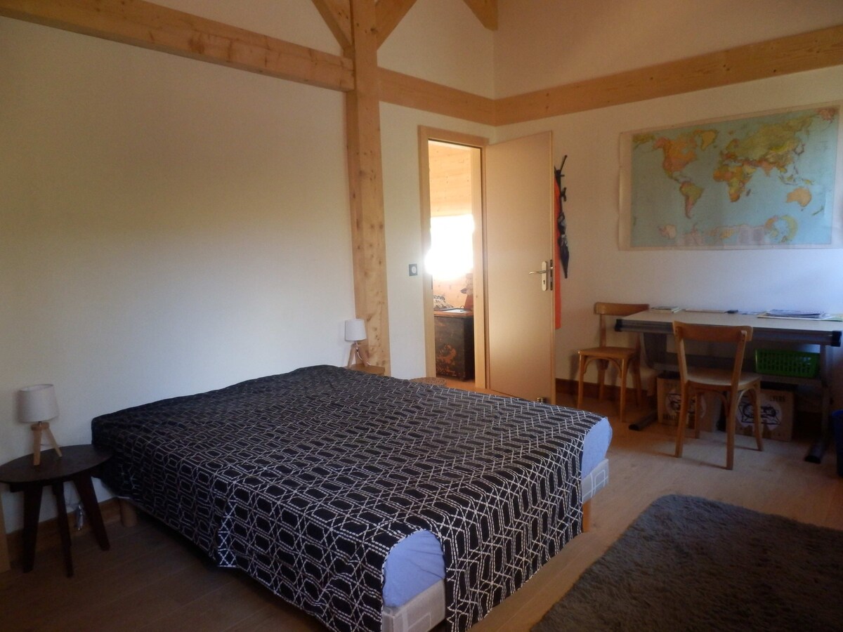 Equipped kitchen/ living room with wood stove/ bathroom with spacious shower/ a separate bedroom with 3 beds (a double bed and a child bunk bed) and a mezzanine with double bed above the living room / garden of 100 m2 with mountain views. Private parking at the front door.