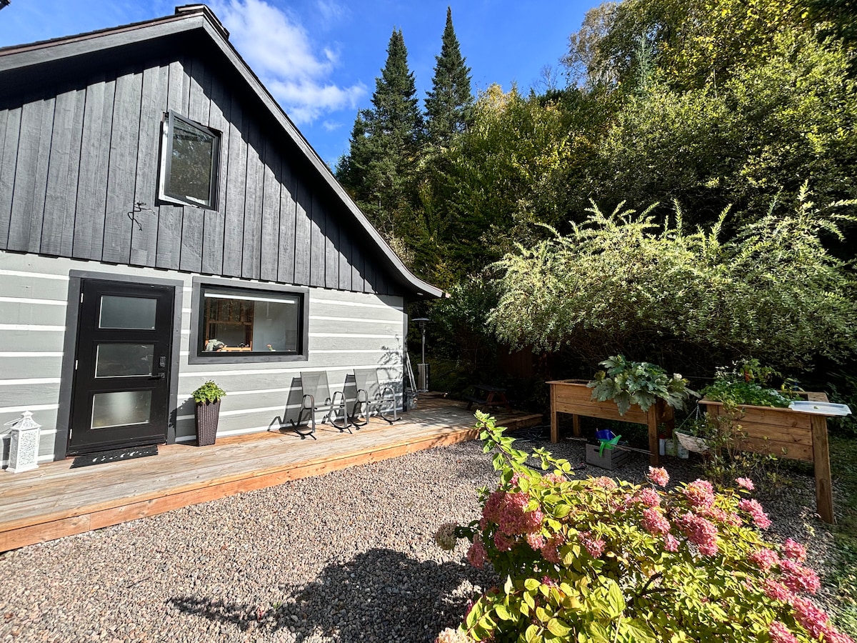 Solid wood chalet, this typical Quebec hideaway transports you to the past with its large wooden beams and round wooden walls. It has two bedrooms with queen beds and one bathroom. The chalet is located about 50 meters from the Labelle road. The distance from the house from the road offers a large safe space for your dogs and children.
