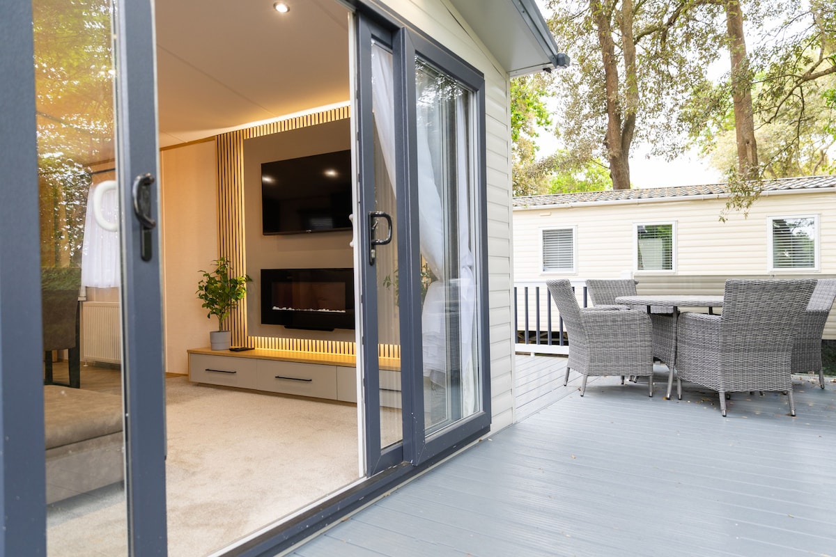 Purchased brand new in 2025, Chantry Lodge is in beautiful condition and is in a great position on the perimeter of Sandhills Coastal Retreat. Overlooking Christchurch Harbour, yet set back
