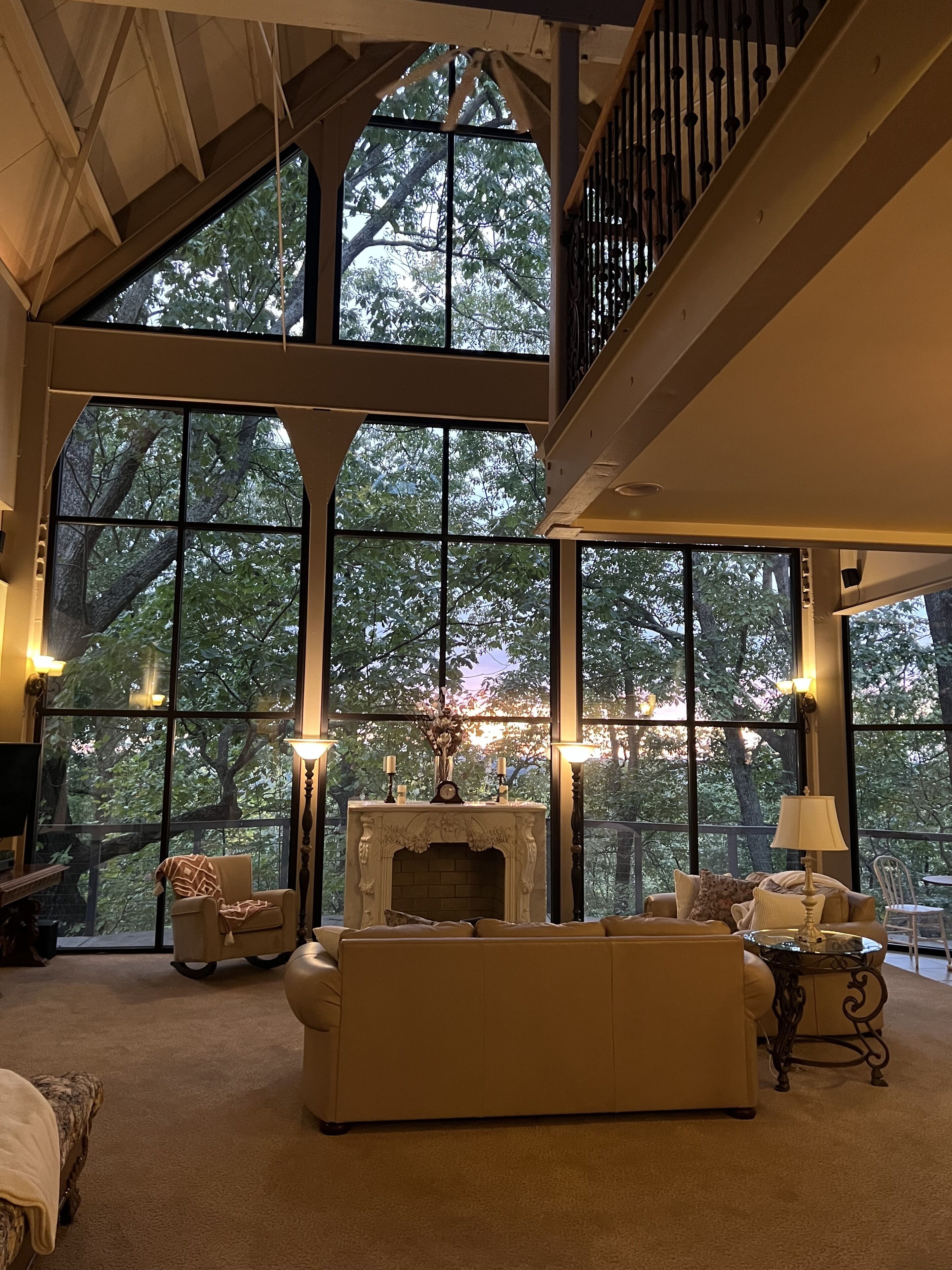 This home is a perfect blend of industrial architecture and southern charm with a touch of French elegance. The loft has sleeping and sitting areas where you will feel like you have escaped to a treehouse. The wooded views are beautiful and the sunsets are spectacular. You’ll enjoy seeing wildlife and listening to the sounds of nature. Home is wheelchair accessible with wide doorways and a curbless shower in the primary bathroom. It is on a hilltop with a steep gravel driveway so AWD or 4WD vehicles work best