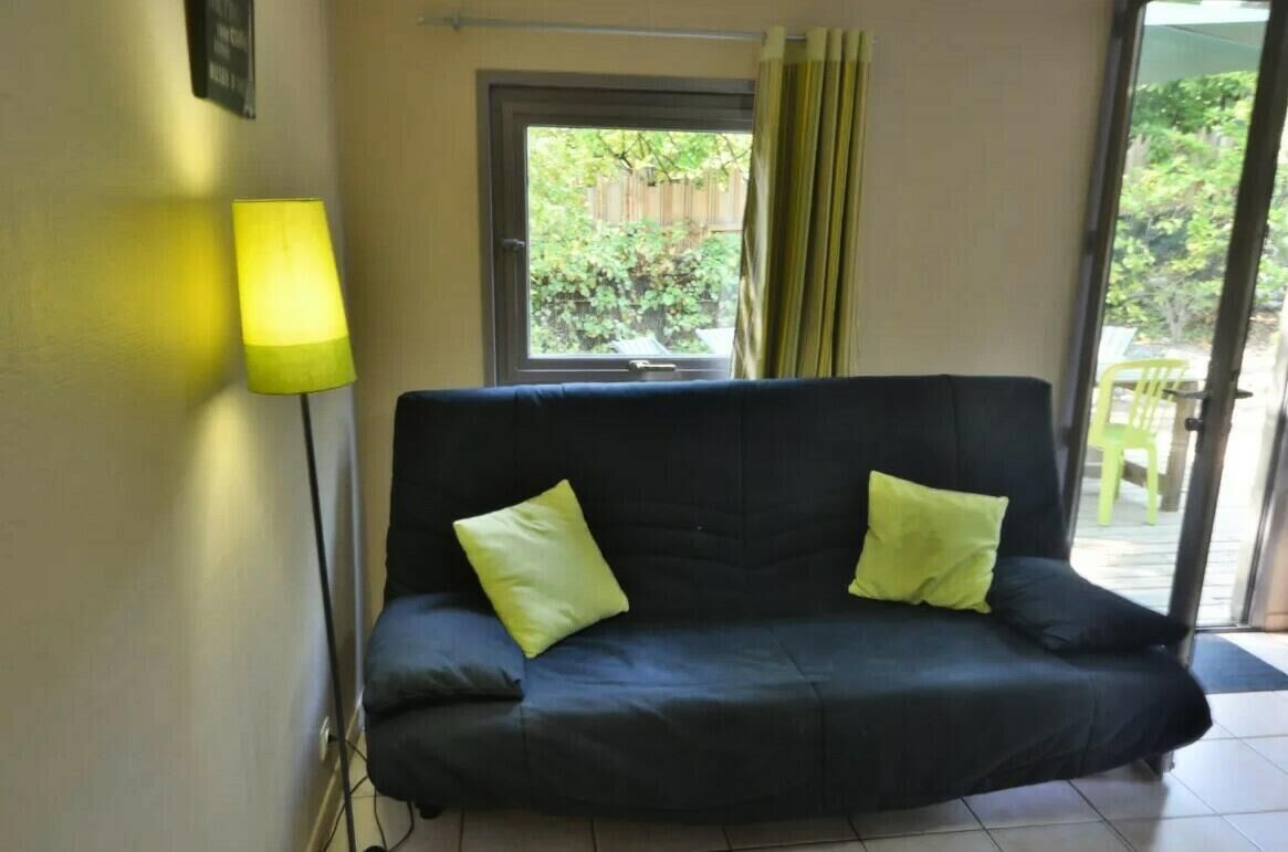 We offer you a comfortable, calm and functional living environment in this small, air-conditioned 2-room chalet of 50 m2, with private parking… electric gate, garden and swimming pool access.