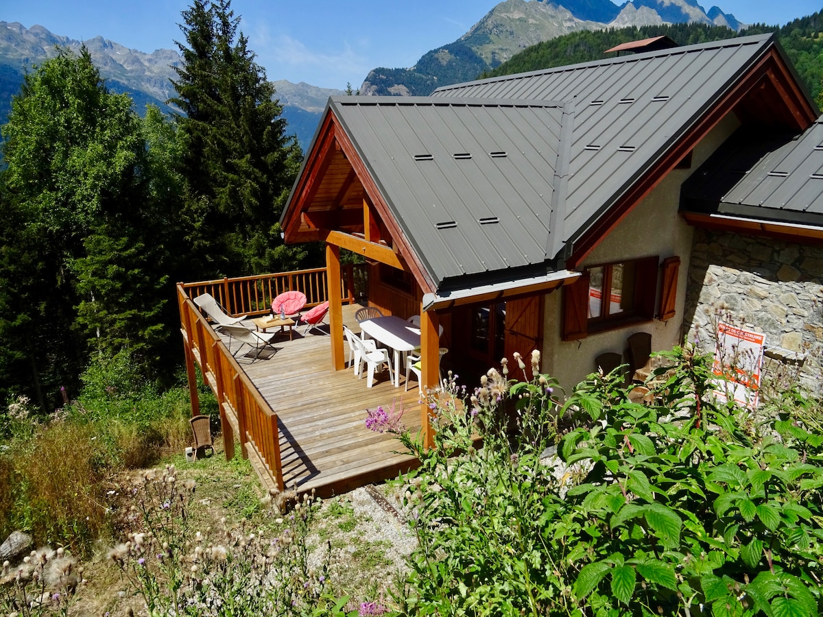 The chalet, with its spacious balconies (XL) on the south and west lies ideal for the sun until late in the day and has a magnificent view of the Massif de Belledonne and the Eau d'Olle valley.