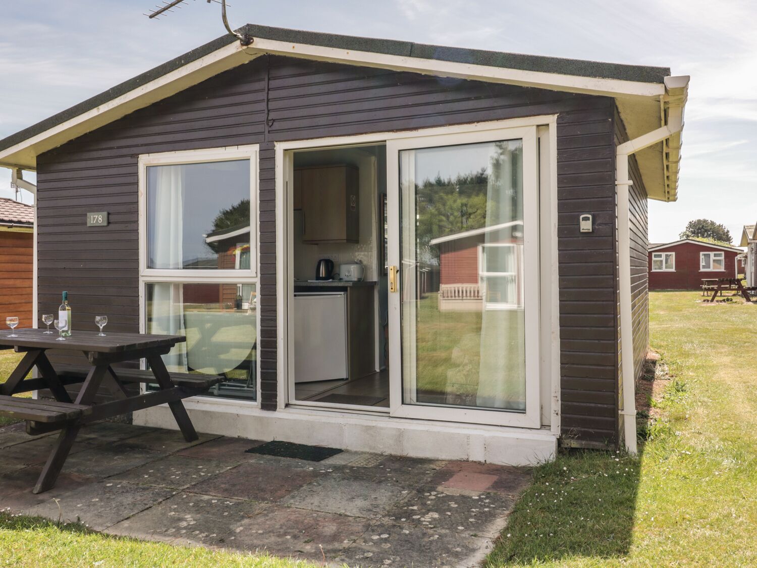 Amenities: Electric partial central heating. Electric oven and hob, microwave, fridge, laundry facilities available in on-site utility at additional cost, TV with Freeview, selection of books, games and DVDs. Fuel and power inc. in rent. Bed linen and towels inc. in rent. Off road parking for one car. Decked area with furniture. Sorry, no pets and no smoking. Shop and pub 2 mins walk. Please note - this property does not accept worker bookings. Note: When arriving at the property, if you sign in at Reception you will have access to on site WIFI, coverage can be intermittent on occasions. Please note: this property does not accept bookings less than 5 nights.