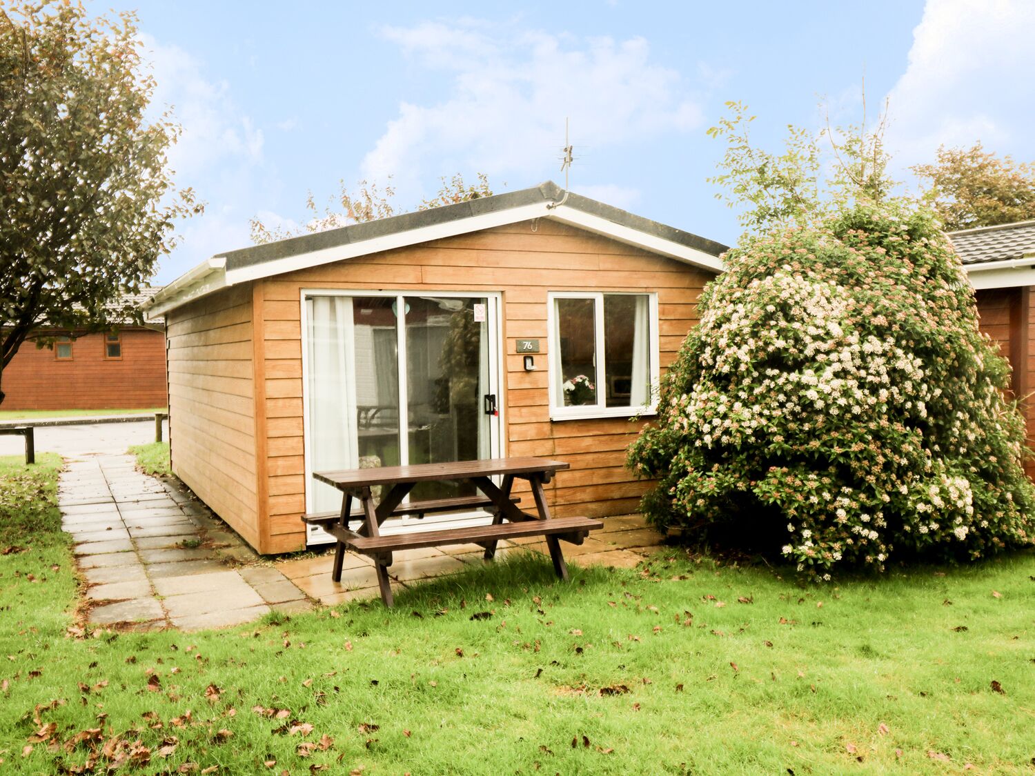 Amenities: Electric central heating. Electric oven and hob, microwave, fridge, washing machine and tumble dryer in external utility, TV with Freeview, selection of books, games and DVDs. Fuel and power inc. in rent. Bed linen and towels inc. in rent. Off road parking for one car. Deck area with furniture. Sorry, no pets and no smoking. Shop and pub 2 mins walk. Please note - this property does not accept worker bookings. Note: When arriving at the property, if you sign in at Reception you will have access to on site WIFI, coverage can be intermittent on occasions. Please note: this property does not accept bookings less than 5 nights.