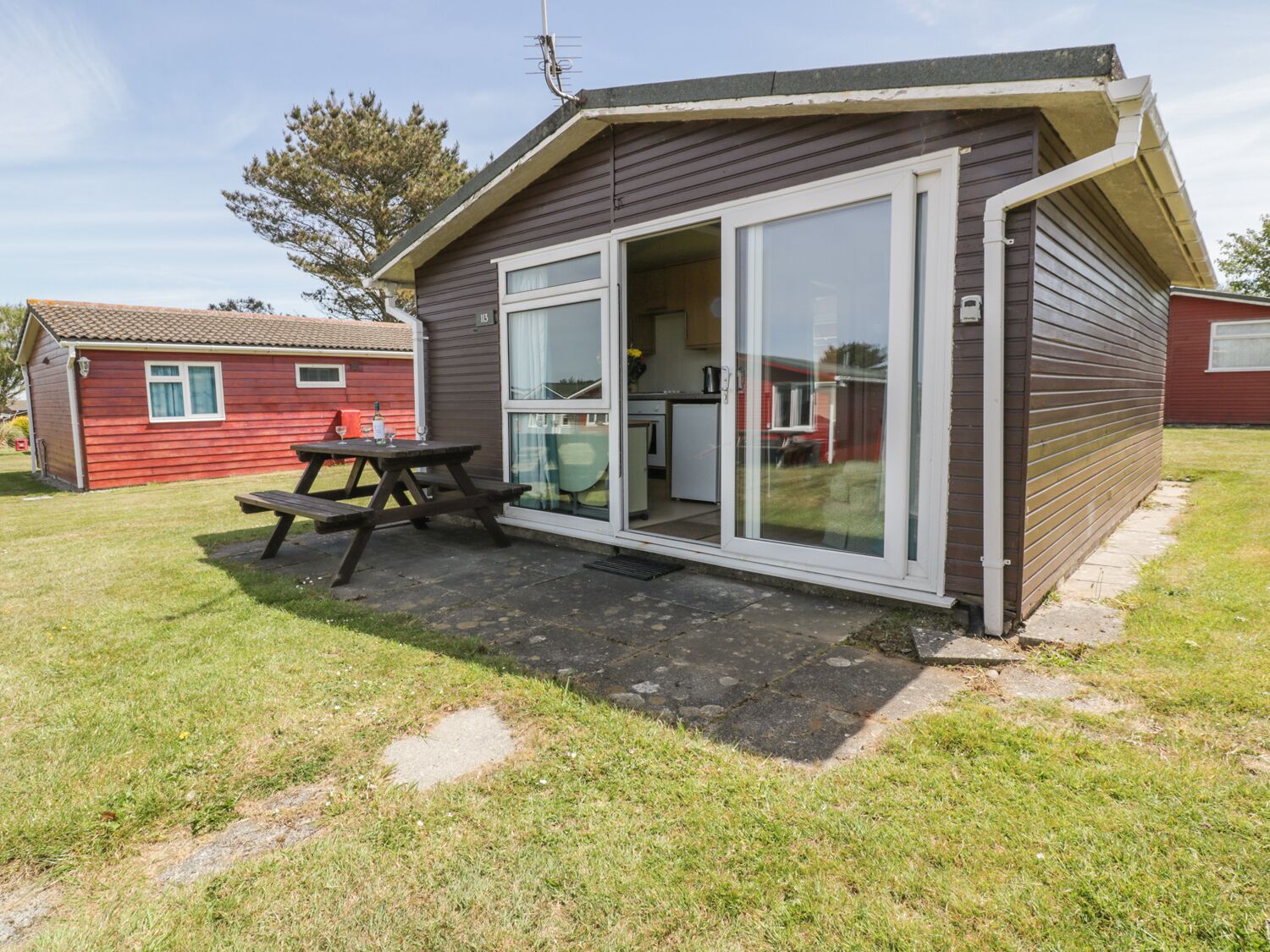 The Chalet is 5.1m (17 feet) long and 5.1m (17 feet) wide and has a comfortable lounge and fully equipped kitchen.