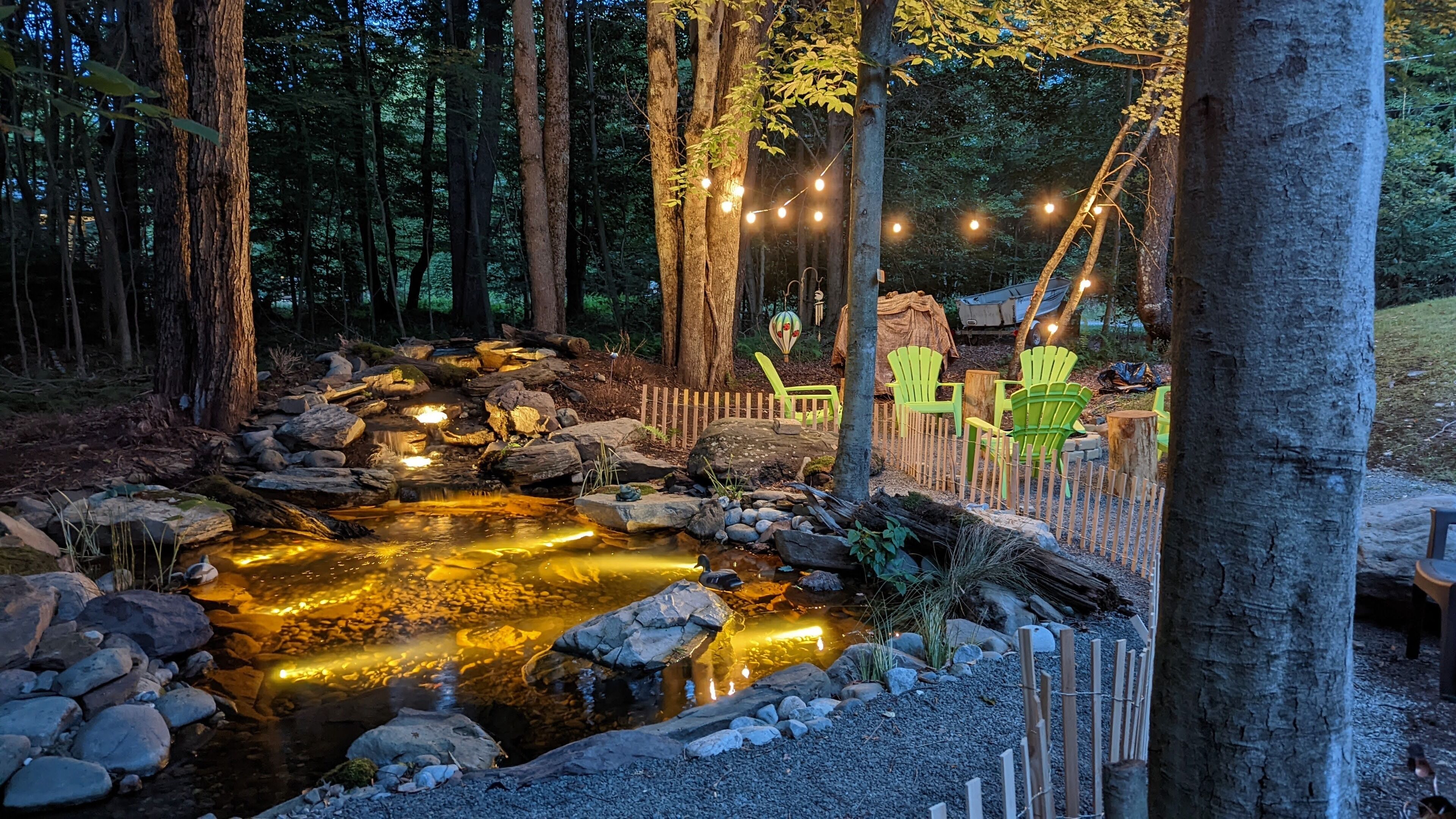 The Chalet is located on a wooded lot, contiguous to woods, and about 1000 ft from Lake Harmony. There you will find Split Rock Lodge which includes an outdoor bar (sometimes Band on Saturday nights), a restaurant, and a lovely open space for outdoor weddings. We don’t use Split Rock beach.