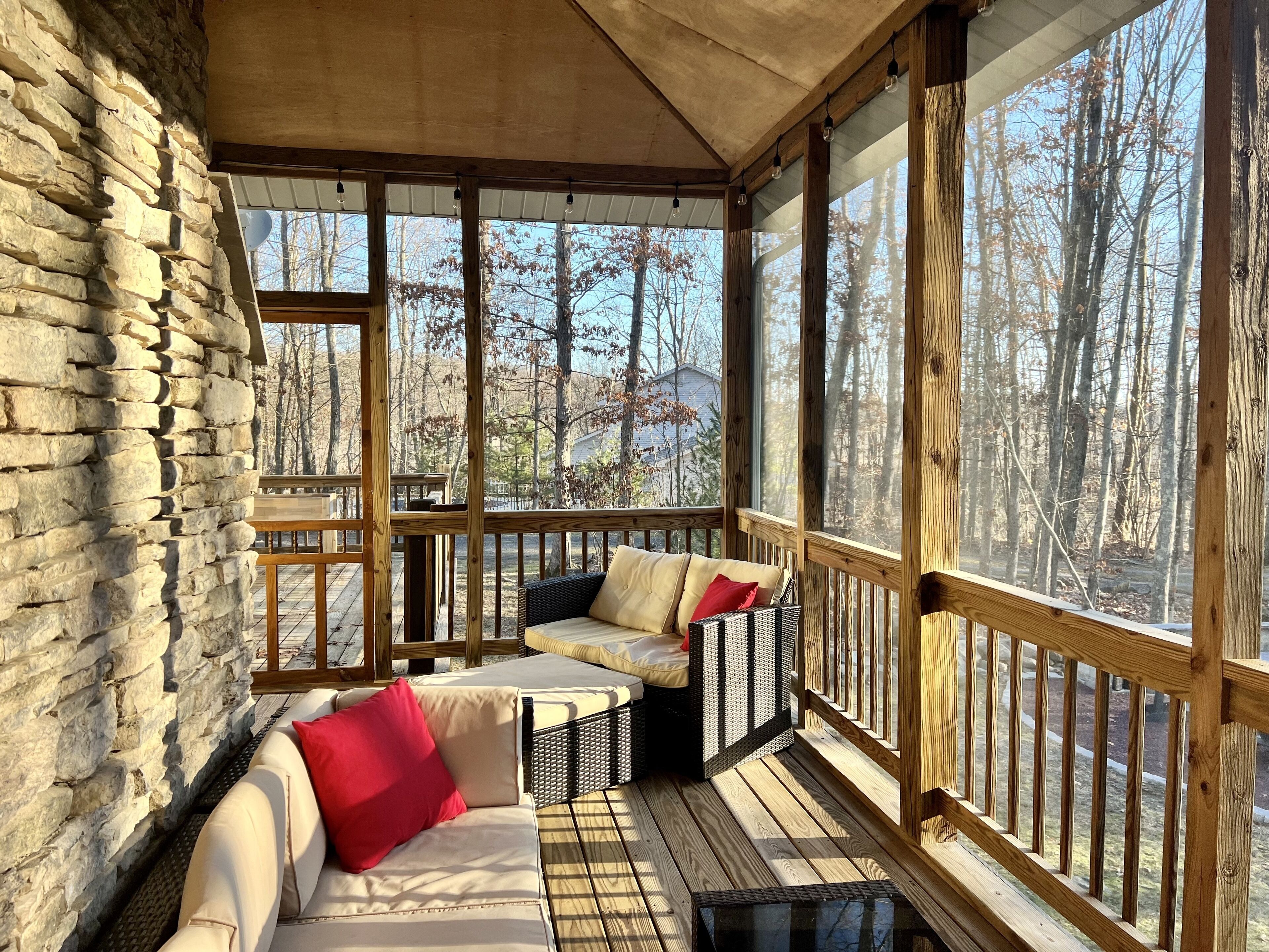 - "Very nice house to stay in. We arrived on Tuesday and departed on Friday. Great location to go skiing at Jack Frost one day and tubing at camelback the next day. Great sunset on the lake in the back yard. Fireplace was perfect." - "It was perfect! Quiet and peaceful. Close to everything we needed. Wish it was our home. On the lake with a bench on the dock was so nice. The shower pressure was awesome! LOL!" - "House was even prettier in person. Had everything we needed, except not enough towels. Seems like that was cleaning company’s fault. Would rent again."