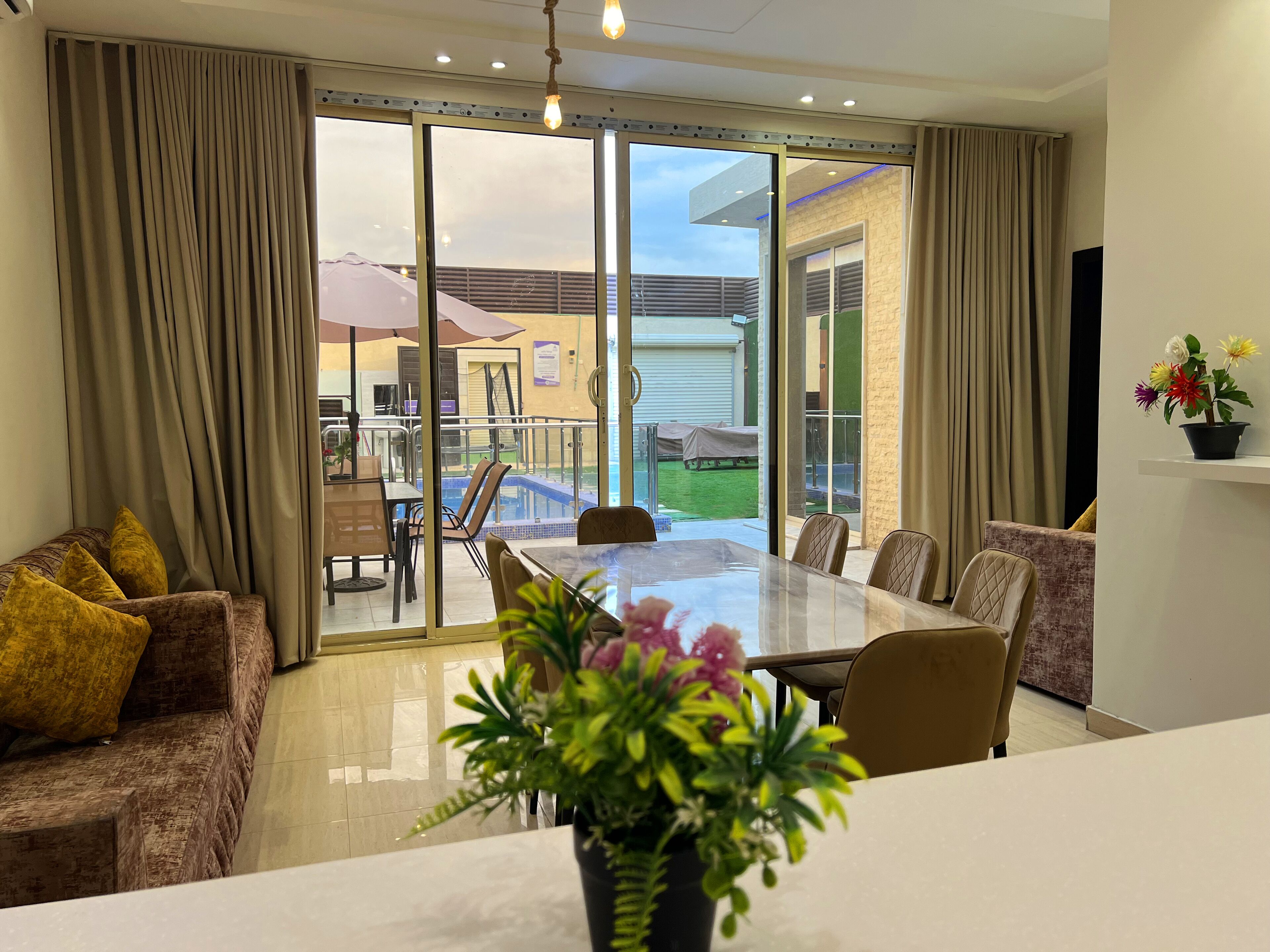 Bedrooms, swimming pools, playgrounds, kitchen, bathrooms, tennis, pool, WifI, mini bar, and more! for weddings, family gatherings, romantic nights, friendly play days, with high security and high privacy and grand service.