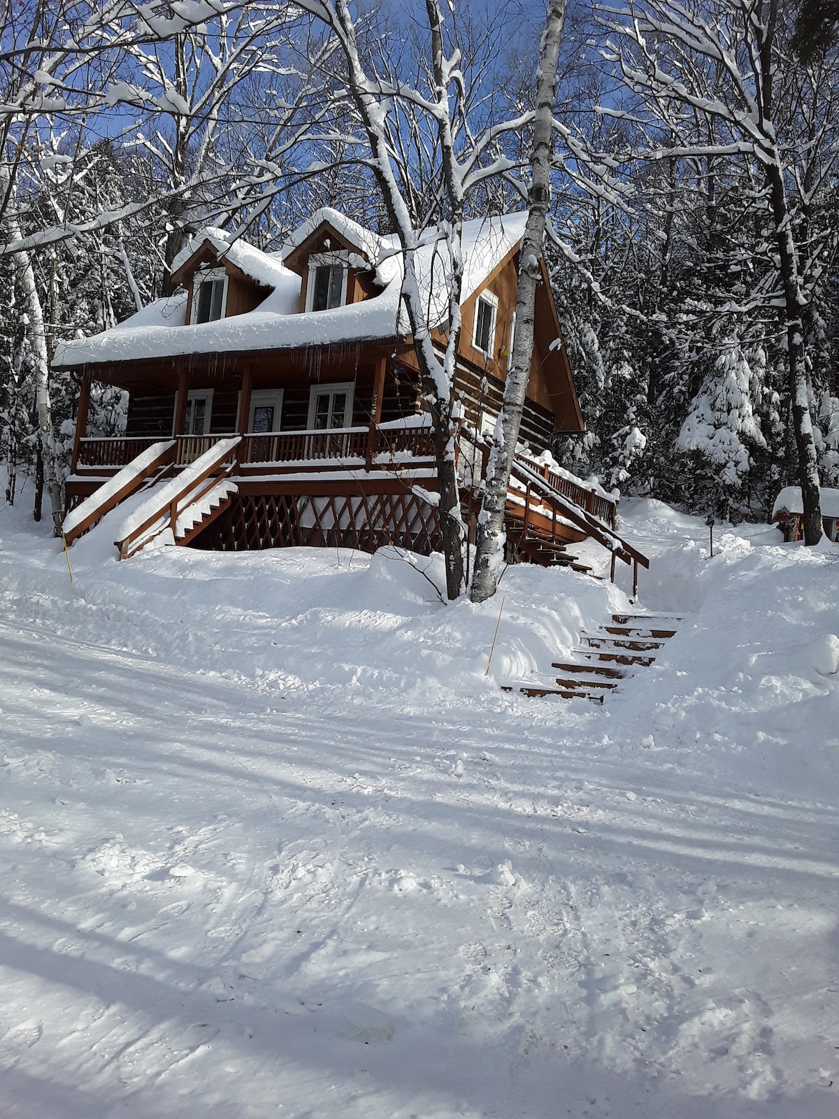 Access to the cottage is by a 300' (100 m) driveway offering flat parking space for 4 vehicules. An additional parking is available at the bottom of the driveway. Please note, the drivewayis well maintained but steep and an VUS is recommended in the winter.