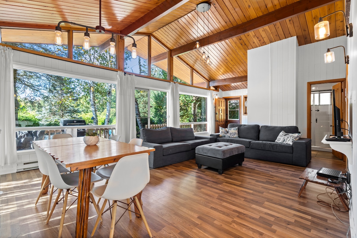 Forget your worries in this spacious and serene space. Enjoy a nature get away in a 3 bedrooms cottage located on the private lake. Indoor / outdoor fireplace, TV, wifi, washer/dryer; sauna; hot tab - all included in your stay. Big enough to be shared with friends or family.