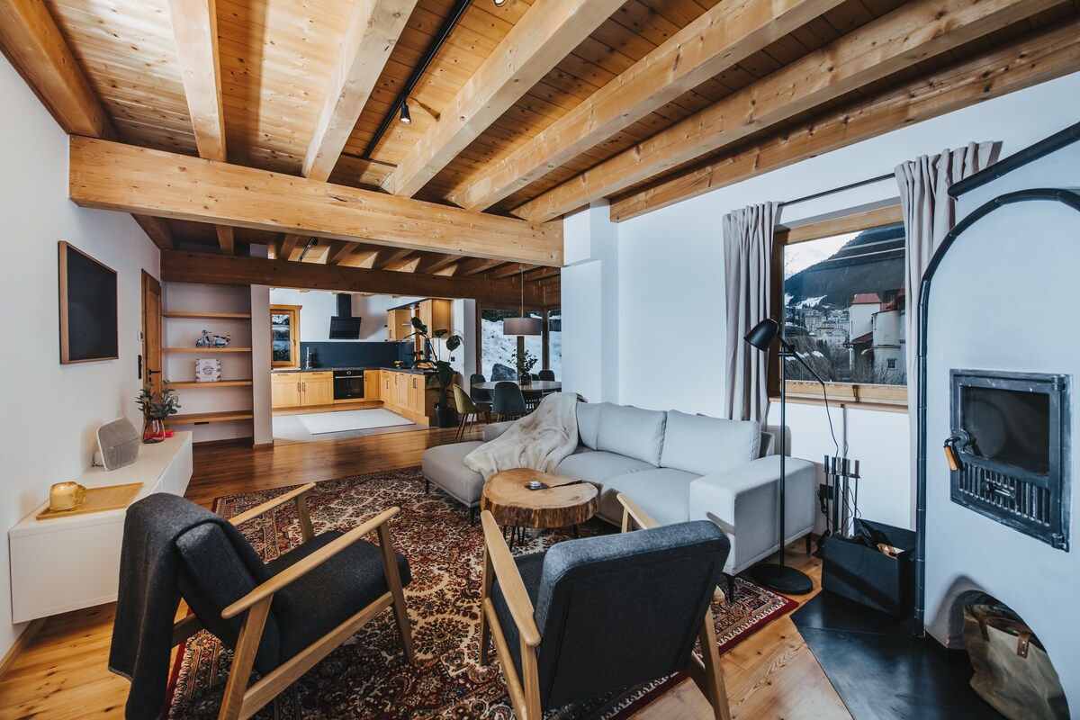 The chalet is authentically and comfortably furnished and has a large living room, a modern open and fully equipped kitchen, a total of 6 bedrooms and 3 bathrooms. The chalet also offers a ski storage room with a ski boot warmer and a washing machine. You can park directly under the carport.