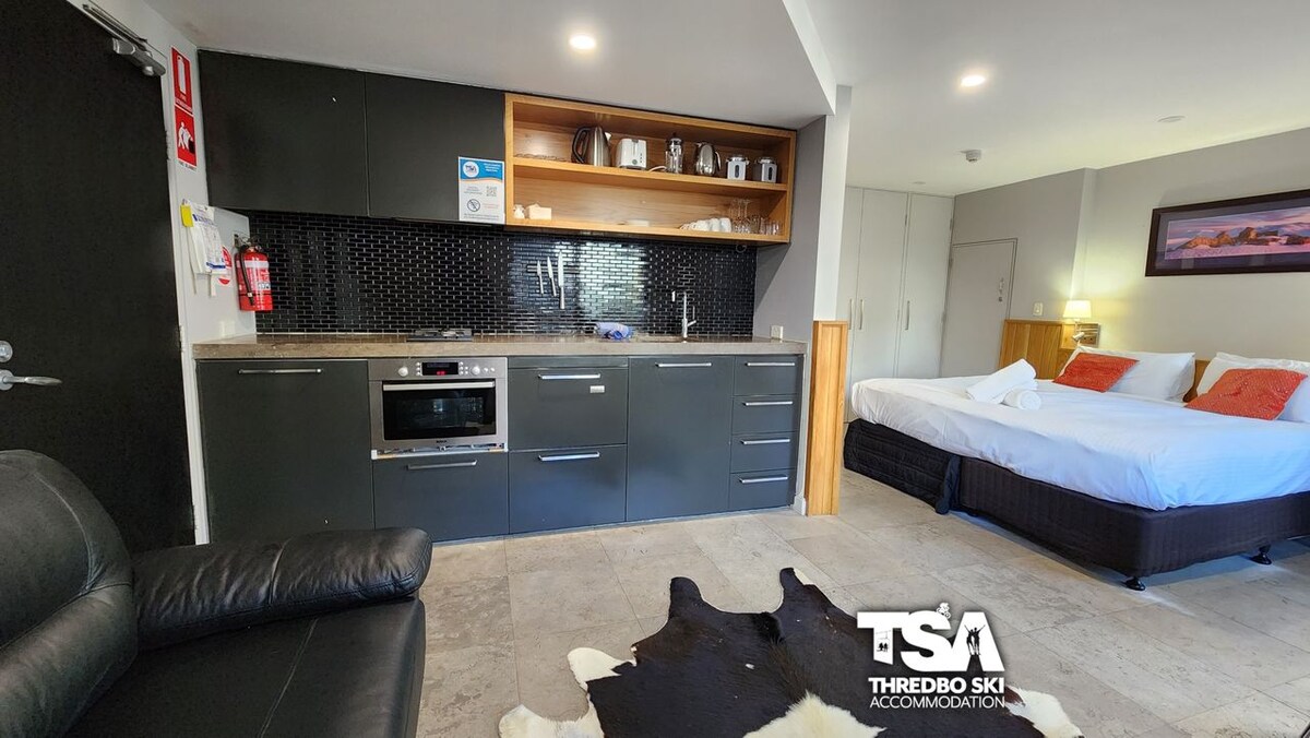 Enjoy the ease of a 3-minute stroll to the village heart, teeming with shops, bars, restaurants, and cafes. Take advantage of the free local bus service conveniently located just outside the door, providing seamless access to all Thredbo has to offer.