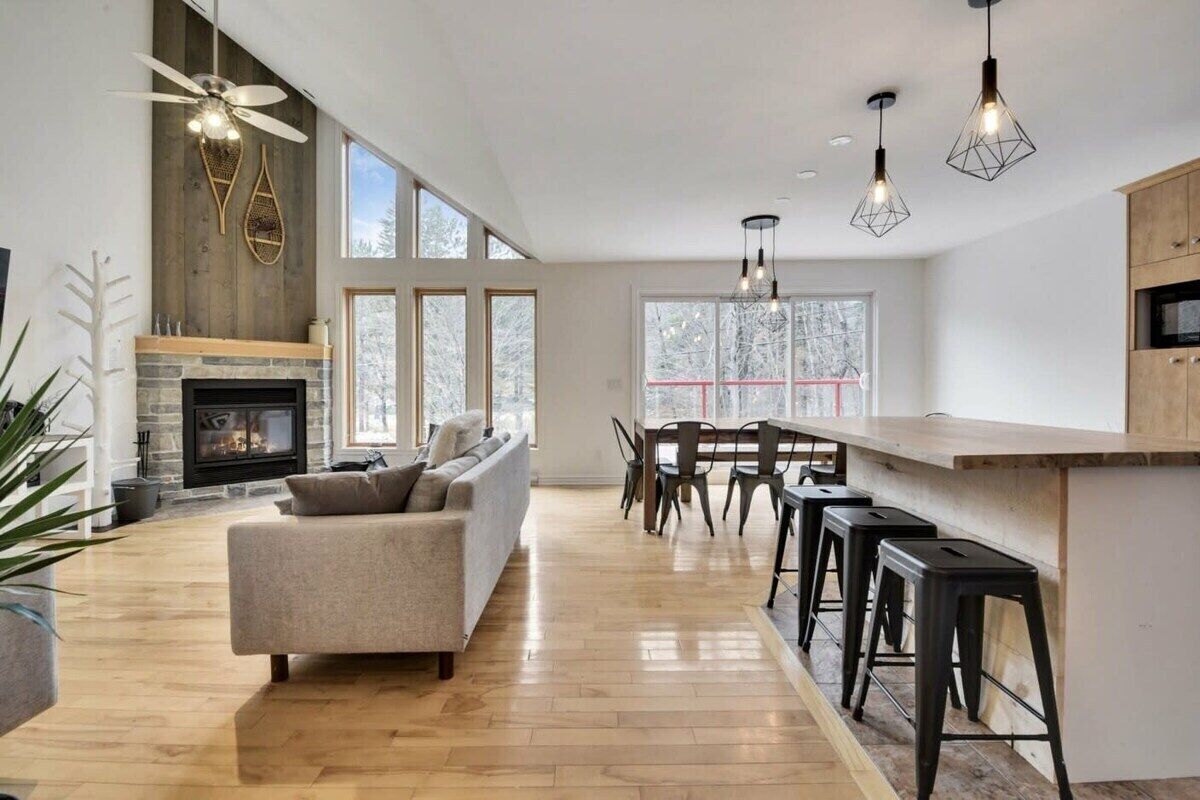 With its breathtaking views of the mountains, its private lake and its many nearby activities, this chalet is ideal for nature lovers looking for a getaway and for those looking for wood fires. Accommodating up to 7 people depending on the configuration (3 queen beds and 1 sofa bed). The place is well appointed and decorated with taste. Its large windows and exceptional natural environment offer a comfortable and unforgettable stay. CITQ#288293