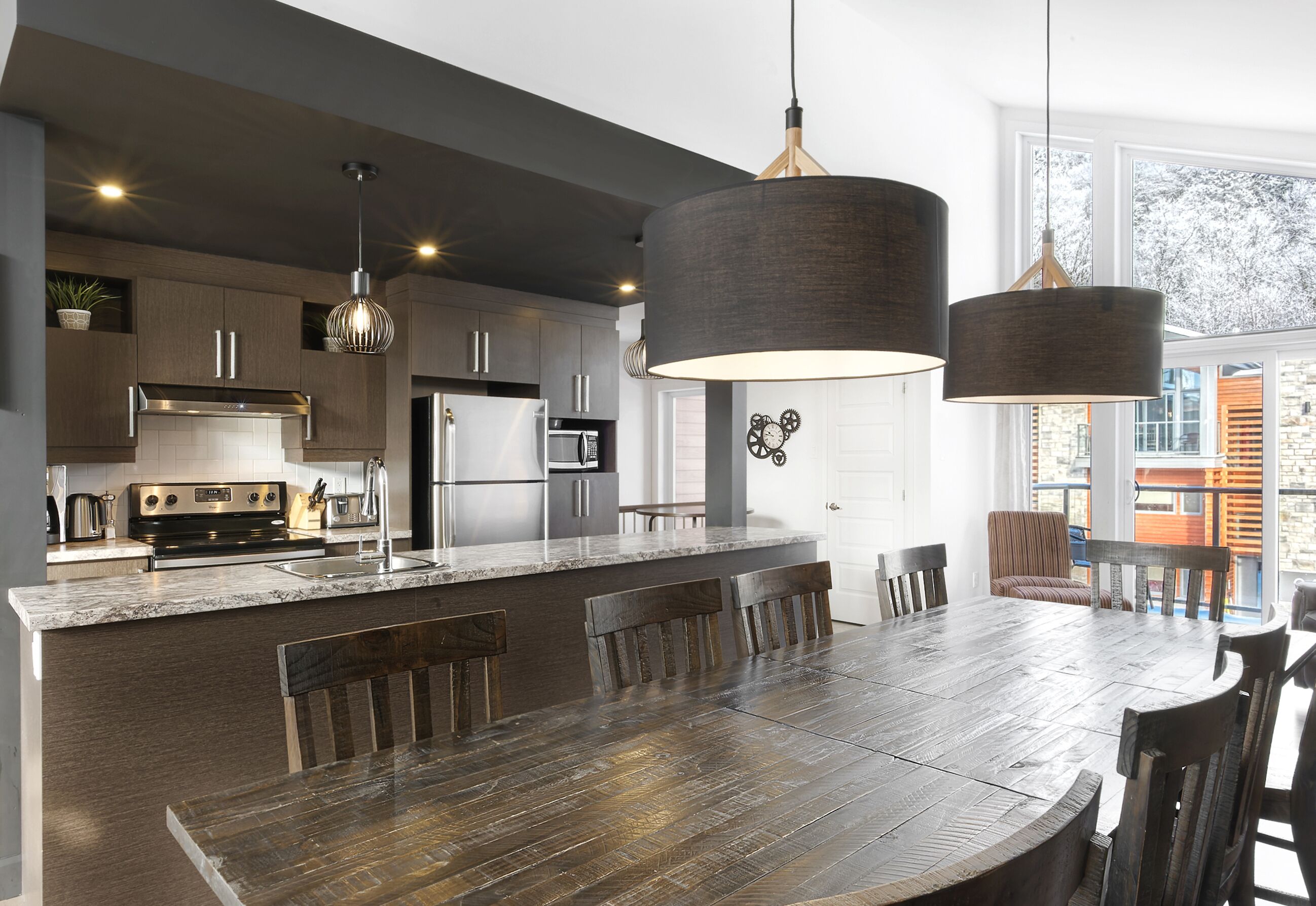 - "The chalet is very nice! Very clean and tidy The spa hot tub is relaxing and clean. The host were very quick to respond. Being on a mountain was a very neat and tranquil experience. We really enjoyed our stay! Thank you hosts!!!! Bushra" - "Our family arrived for a wedding in Quebec. The unit we stayed was in close proximity to our relatives and the wedding. The house was well appointed with everything we needed" - "Our family had a great time staying at this condo. There was lots of space for the 8 of us to spread out and relax, enjoy some pool, the hot tub and games on the tv screen. The kitchen was very well equipped for meal preparation, serving, and clean-up. A couple of items to note is that this condo is at the top of a very steep hill. It had snowed the day of our arrival and if we didn't have 4 wheel drive we would not have made it up. Our second vehicle has snow tires but had to park at the bottom of the hill. The only other vehicles parked at the top had 4 wheel or all-wheel drive. The next day when the road was cleared it was fine. Although this condo is listed as ski-in, ski-out it would be very difficult to access the ski runs from this location. Fortunately it is a short drive to the lifts. Communication with the host, Dominic was prompt and we appreciated the option to have an earlier check-in and later check-out although we didn't end up using them because of weather. Overall highly recommend this place, just make sure you can make it up the hill :)"
