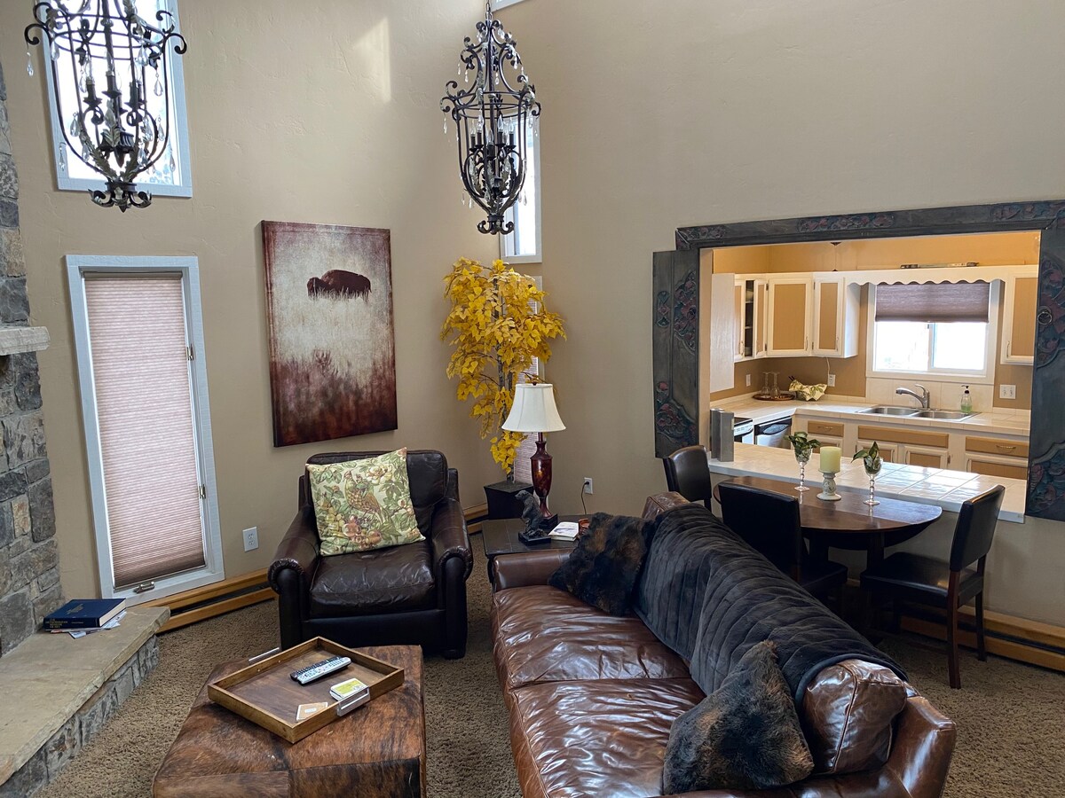 The top floor features an accommodating gathering area with pine vaulted ceilings, an abundance of windows and natural sunlight+ alpenglow mountain views that afford a greater sense of spaciousness and alpine appeal than a typical "ski condo."