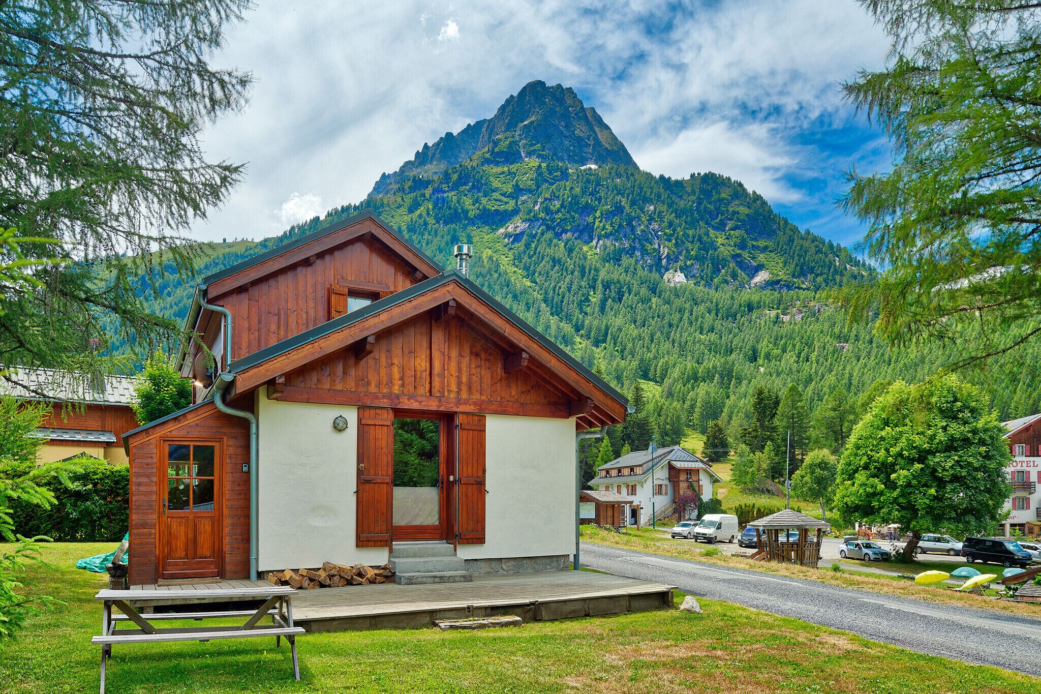 Access to the Chalet is to the right hand side between the houses via a small wooden lobby that's great for storing skis. There are just three small steps down and take care when it's icy but we'll make sure the snow is cleared in winter.